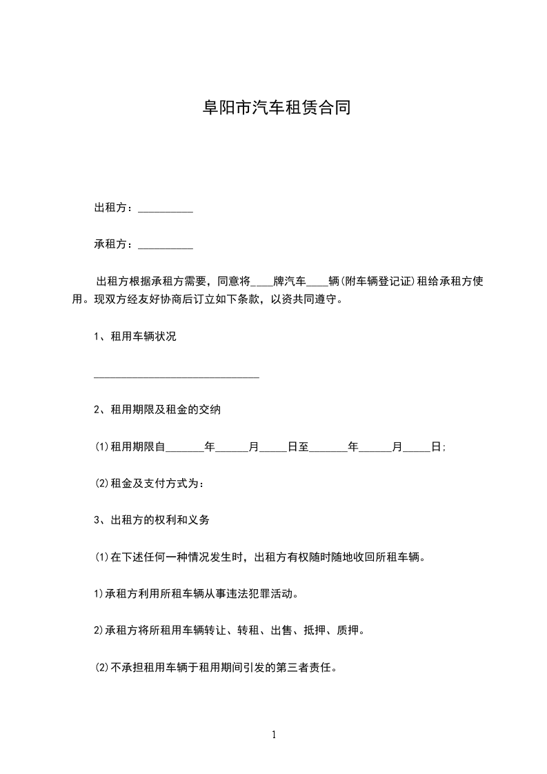 2、租期期限及车位租金:自_______年_______月_______日至_______年_______月_______日止,租金合计人民币_________元(大写:__________________)。租金由乙方在签署协议后一次性支付给甲方。租赁期内的车位管理费等一切杂费由乙方承担。