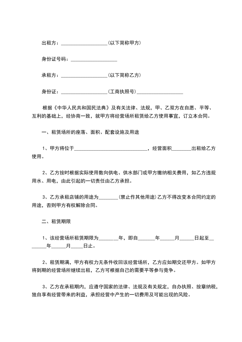 根据《民法典》等有关法律、法规的规定,遵循平等、自愿、公平和诚实的.原则,双方就租赁场地从事经营的事宜经双方协商达成协议如下: