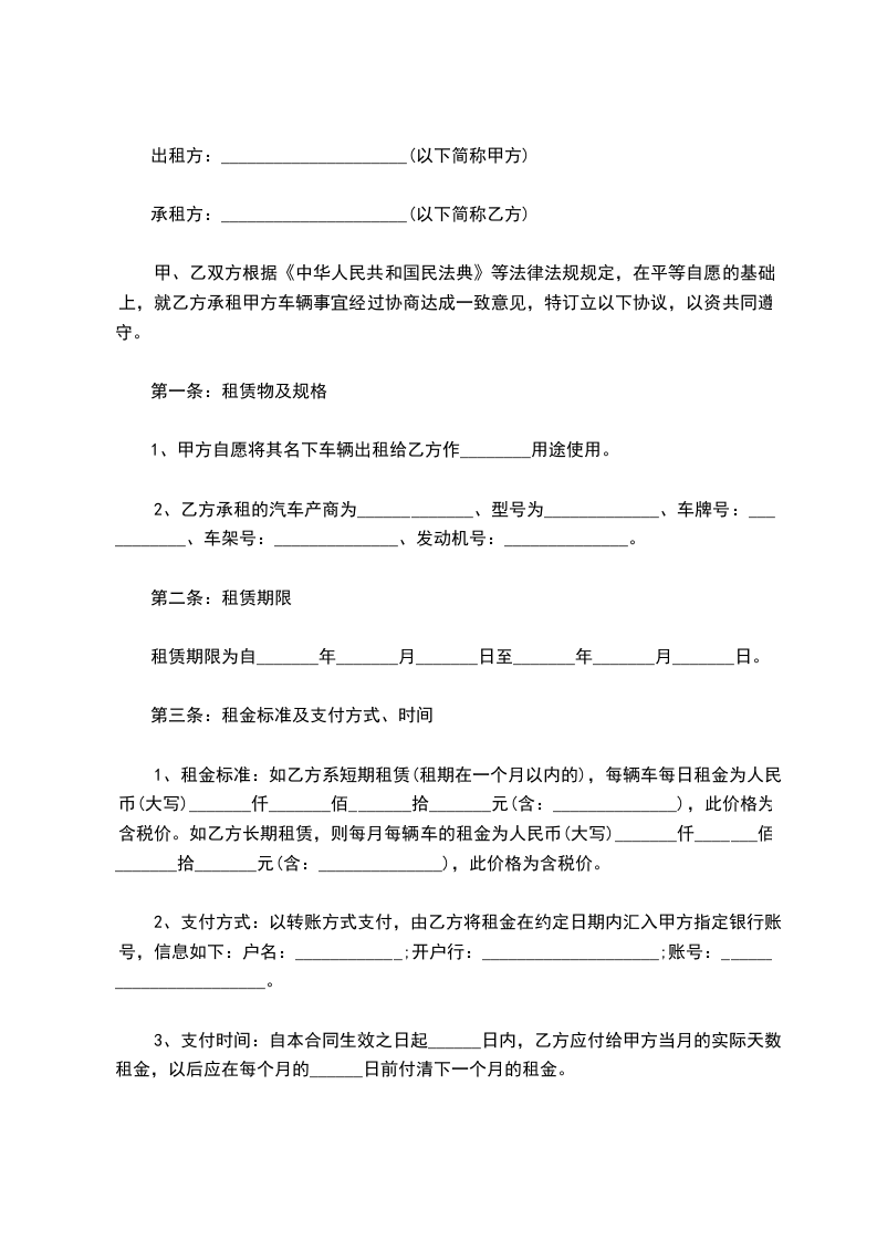 按照中华人民共和国的有关法律法规,遵循诚实信用、平等互利的原则。经双方协商一致,就乙方承租甲方车辆之事宜达成如下协议,特订立本合同,供双方共同遵守执行。