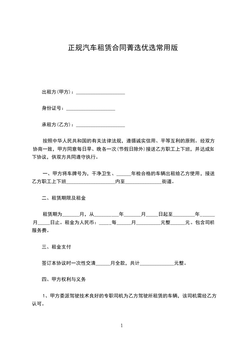 一、车辆出租:甲方自愿将其单位车辆(车牌:_____)出租给乙方做使用。甲方应当于本协议订立之日起_____日内 向乙方交付车辆,同时还应交付行驶证、购置税缴纳证、已付 凭证、随车工具、备胎一个。