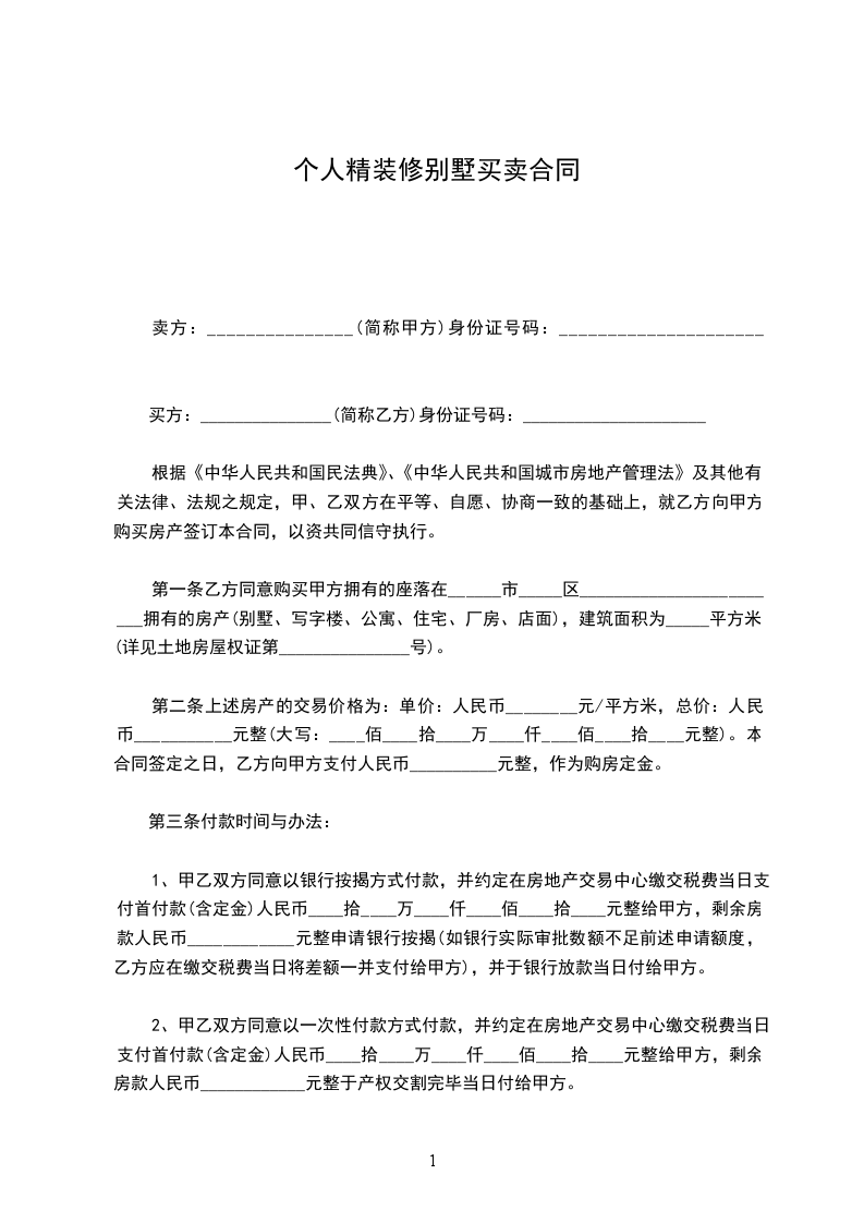 买方:_______________(简称乙方)身份证号码:_____________________