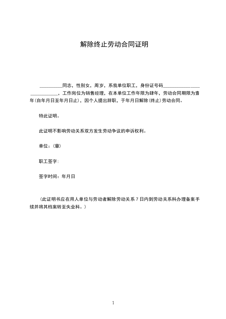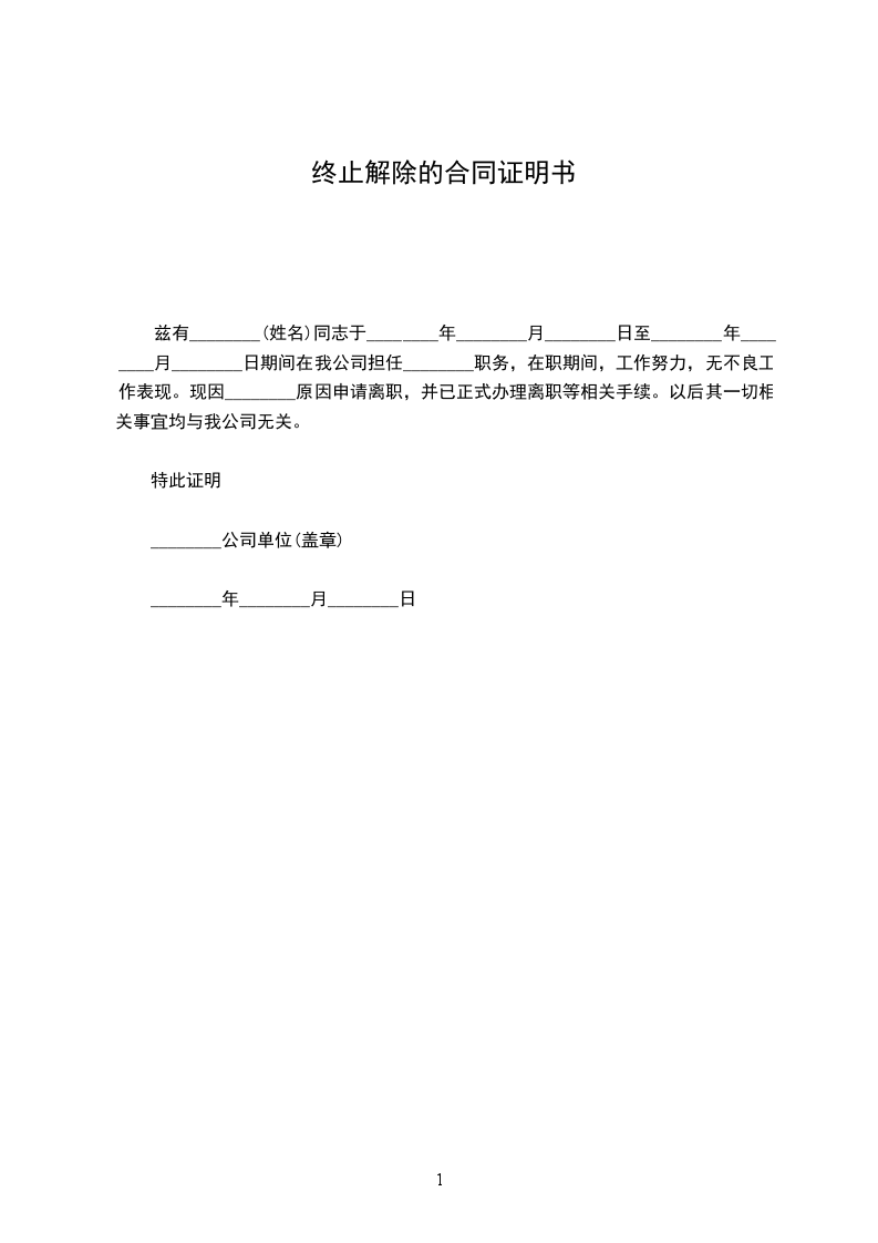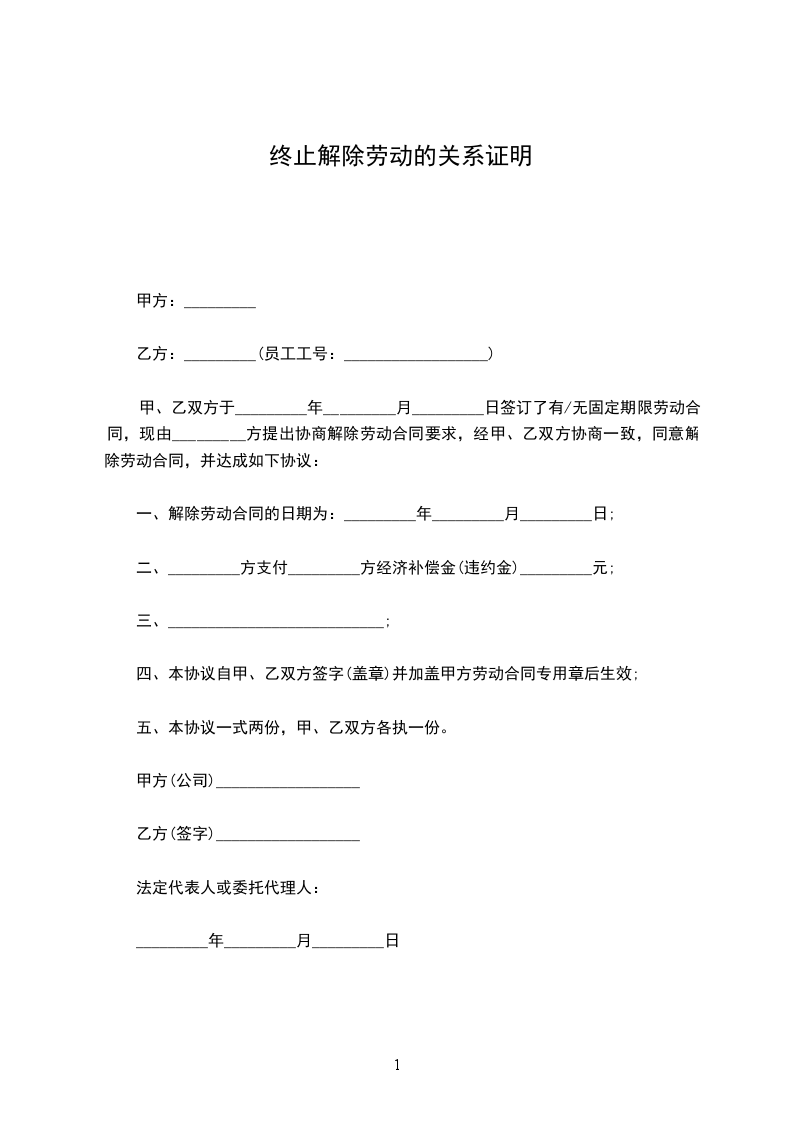 自 年 月 日与本单位签订了劳动合同(或建立工作关系)。现已于 年 月 日终止/解除劳动合同(或工作关系)。