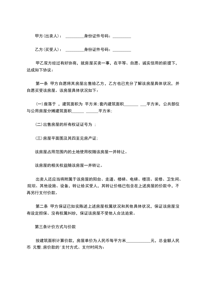 出卖方(甲方):______________身份证号码:_______________________