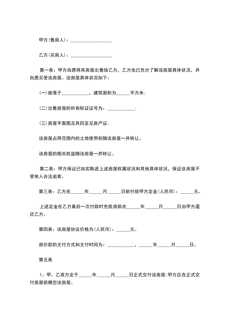 第一条:甲方自愿将其房屋出售给乙方,乙方也已充分了解该房屋具体状况,并自愿买受该房屋。该房屋具体状况如下:
