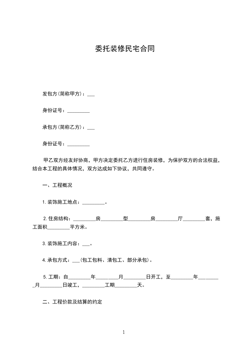 4.承包方式:___(包工包料、清包工、部分承包)。