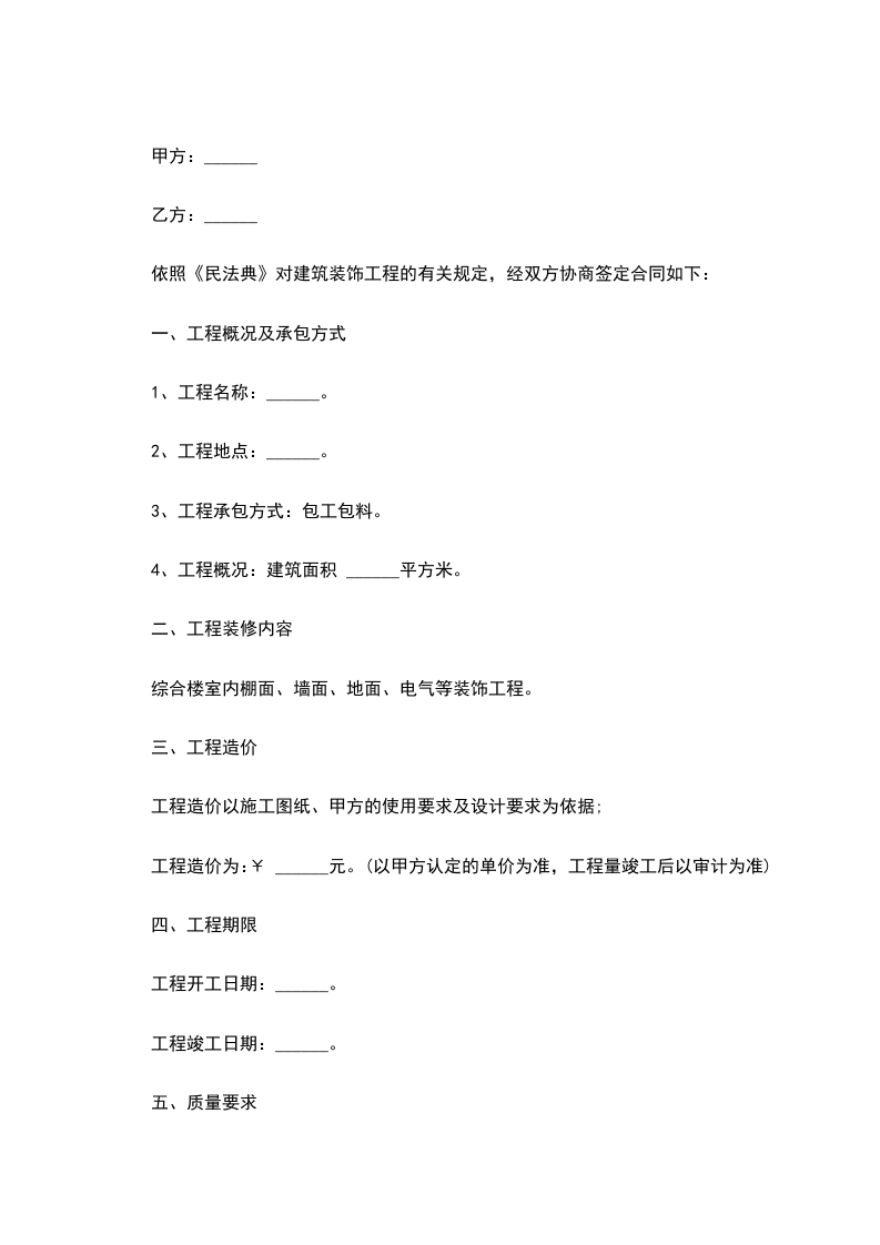 依照《民法典》对建筑装饰工程的有关规定,经双方协商签定合同如下: