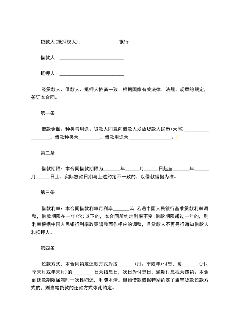 (三)本合同一式_________份,贷款人持二份,借款人和抵押人各执一份,效力同等。