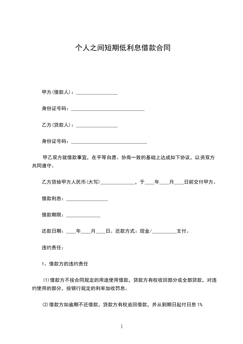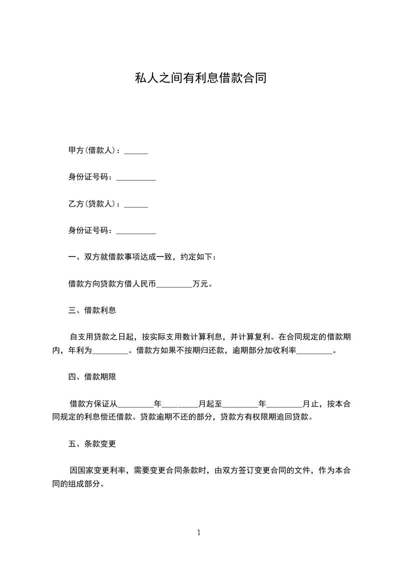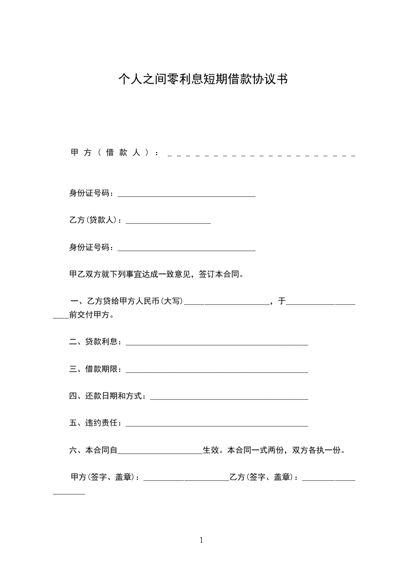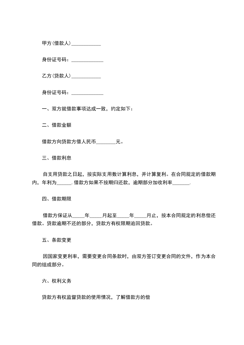 一、乙方贷给甲方人民币(大写)_____________________,于_____________________前交付甲方。