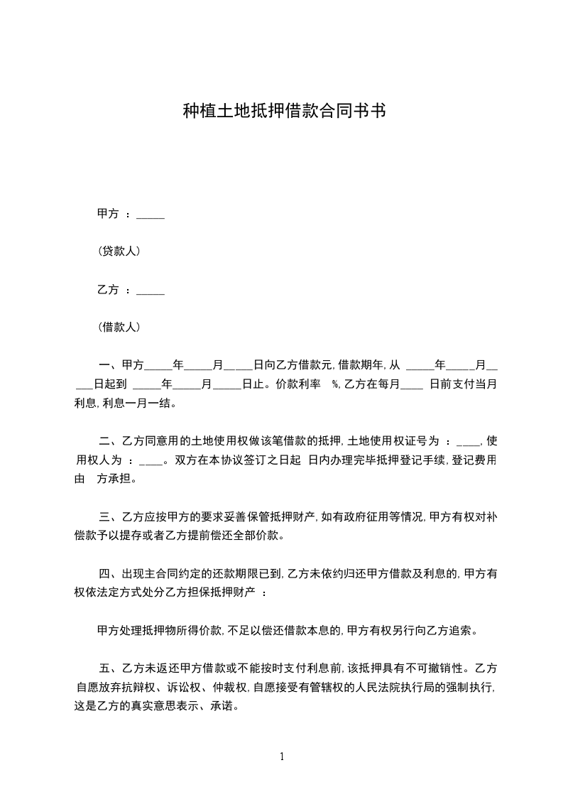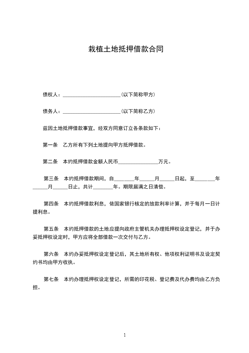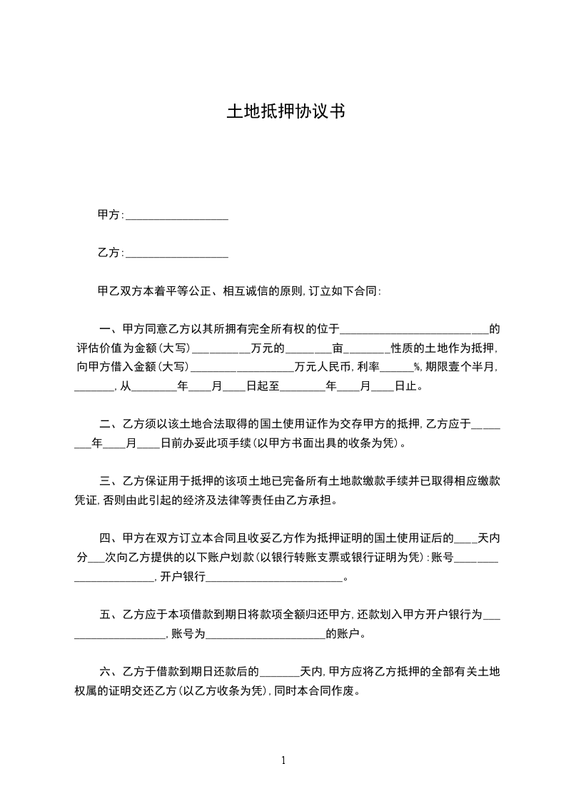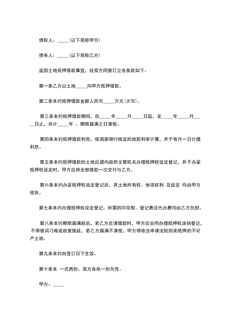 兹因土地抵押借款事宜,经双方同意订立各条款如下: