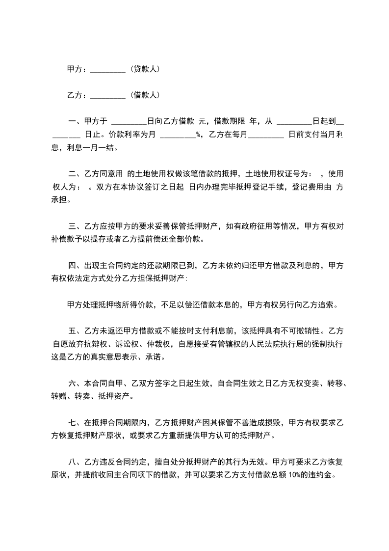 第一条乙方以土地_____向甲方抵押借款。