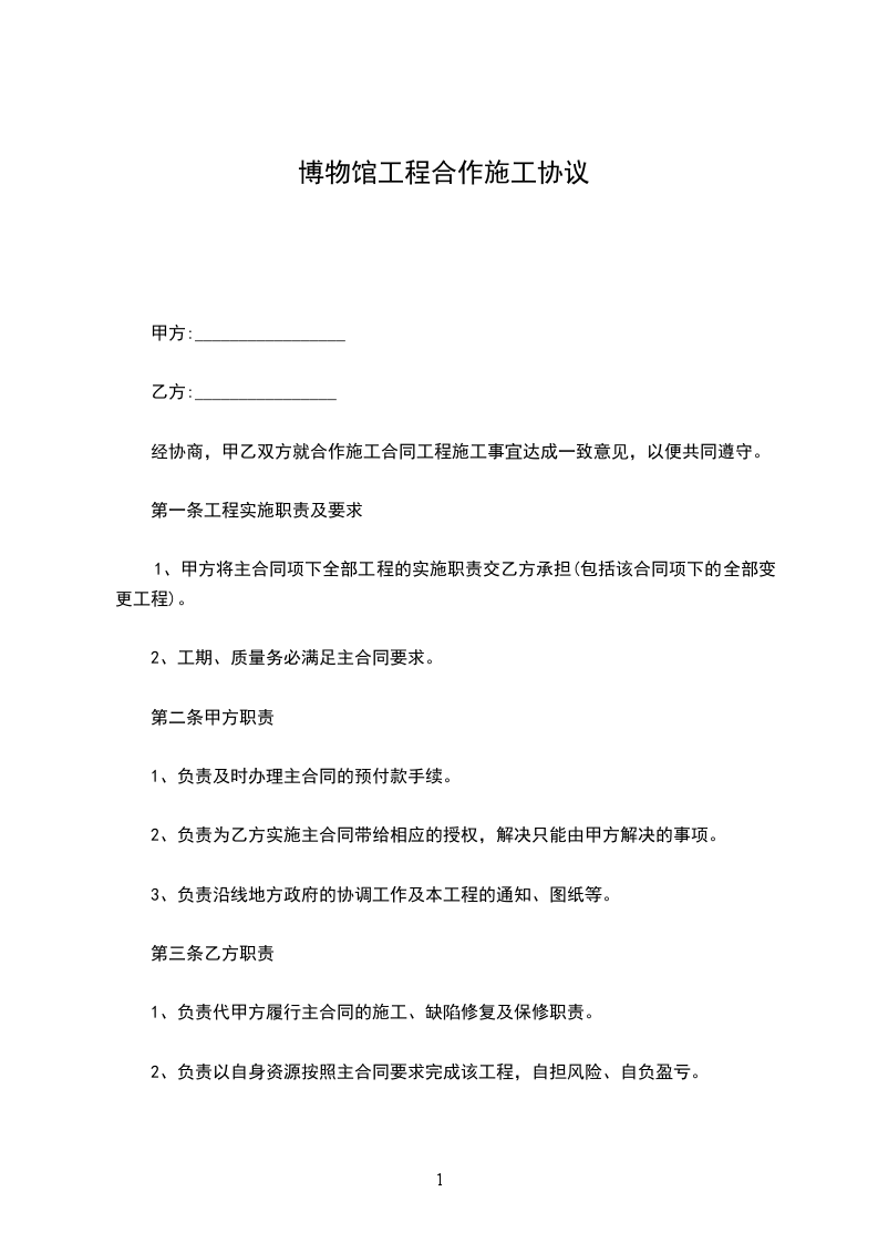 1、甲方将主合同项下全部工程的实施职责交乙方承担(包括该合同项下的全部变更工程)。