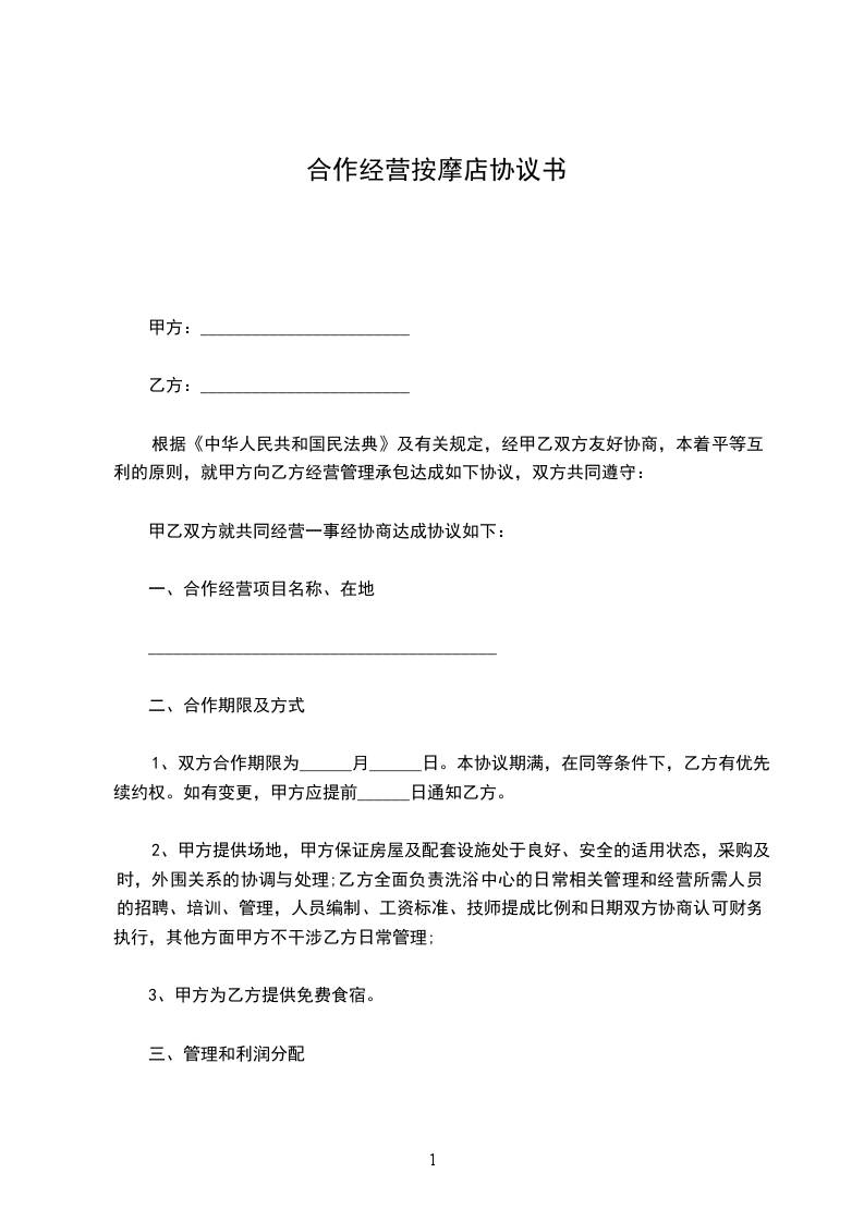 根据《中华人民共和国民法典》及有关规定,经甲乙双方友好协商,本着平等互利的原则,就甲方向乙方经营管理承包达成如下协议,双方共同遵守:
