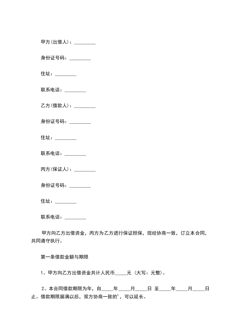 第一条--借款金额与期限