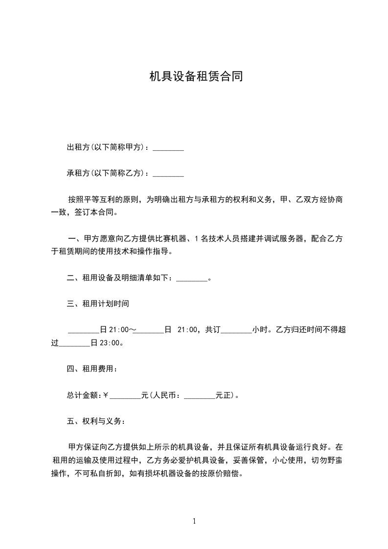 一、甲方愿意向乙方提供比赛机器、1名技术人员搭建并调试服务器,配合乙方于租赁期间的使用技术和操作指导。