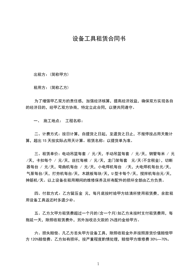甲方保证向乙方提供如上所示的机具设备,并且保证所有机具设备运行良好。在租用的运输及使用过程中,乙方务必爱护机具设备,妥善保管,小心使用,切勿野蛮操作,不可私自折卸,如有损坏机器设备的按原价赔偿。