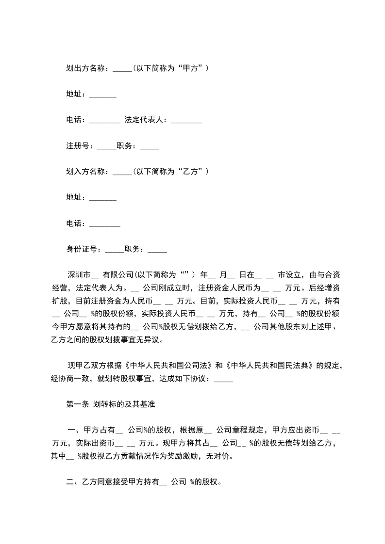 1、甲方保证所转让给乙方的股权是甲方在_______有限公司的真实出资,是甲方合法拥有的股权,甲方拥有完全的处分权。