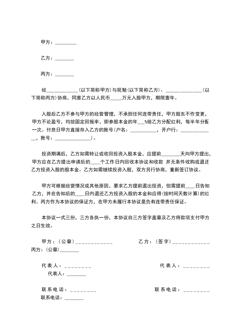 甲方以方式出资,计人民币______元(大写__________________元)。乙方以方式出资,计人民币______元(大写__________________元)。双方的出资应于__________年________月_______日之前悉数交齐,逾期不交或未交齐者,应对应付金额计付银行利息,并以资金形式赔偿另一方由此直接造成的全部经济损失。双方方出资合计______元(大写__________________元),为双方共有财产,不得随意请求分割,任一方支配时,需经另一方同意。