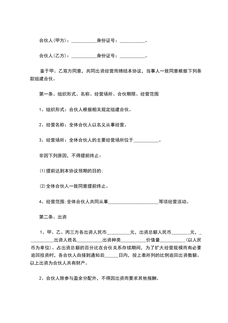 合伙期限为______年,自__________年________月_______日起,至__________年________月_______日止。
