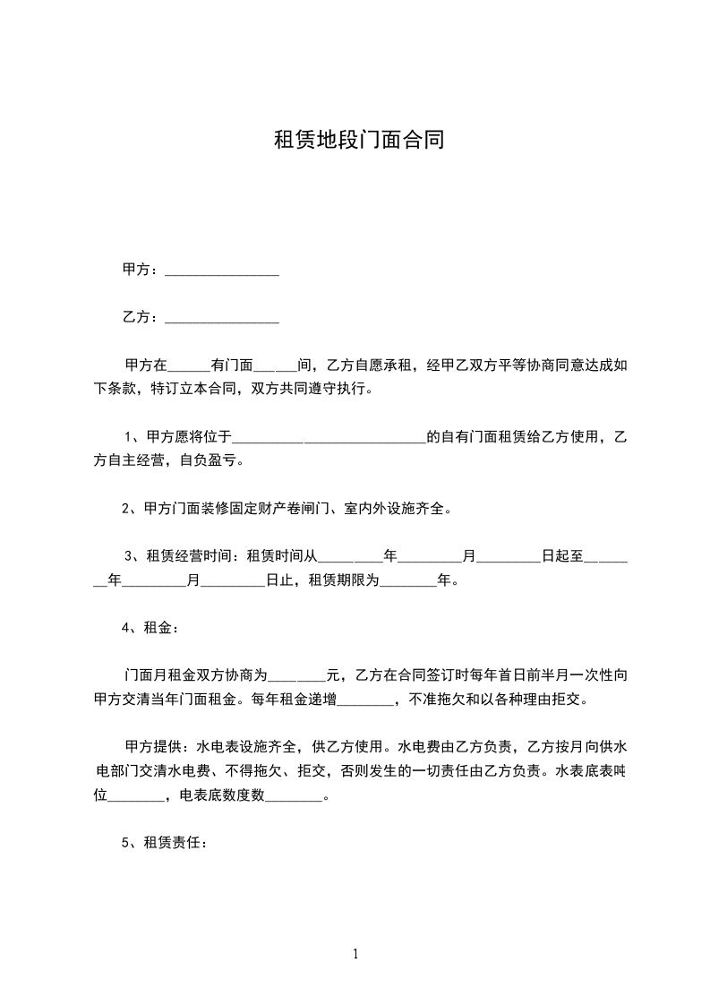 1、甲方出租给乙方的门面房位于改造后的______________________________,门面编号:______________,面积为:______________。