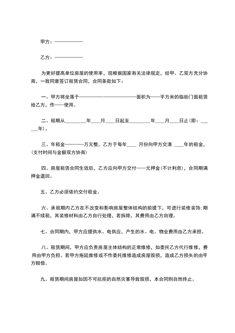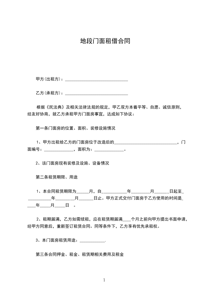 根据《民法典》及相关法律法规的规定,甲乙双方本着平等、自愿、诚信原则,经友好协商,就乙方承租甲方门面房事宜,达成如下协议: