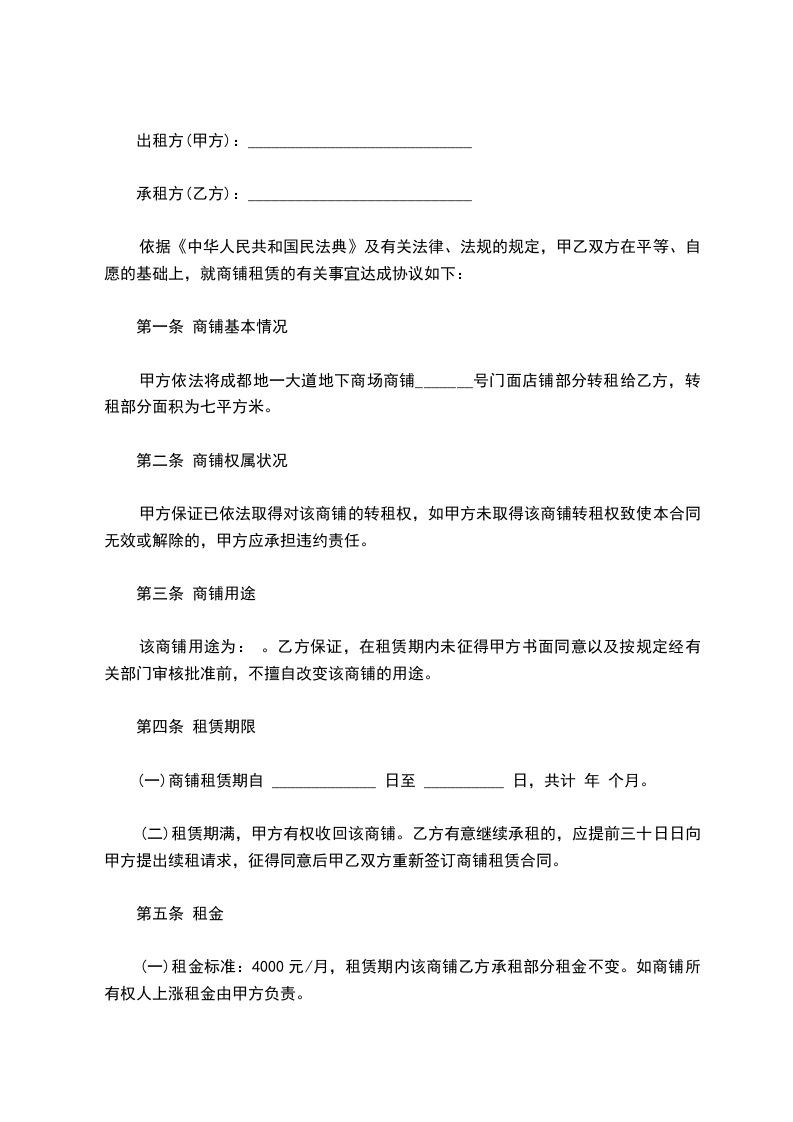 乙方向甲方租赁位于商铺(建筑面积_____平方米),用于商业经营,不得将租赁商铺于作餐饮、咸杂或污染行业。