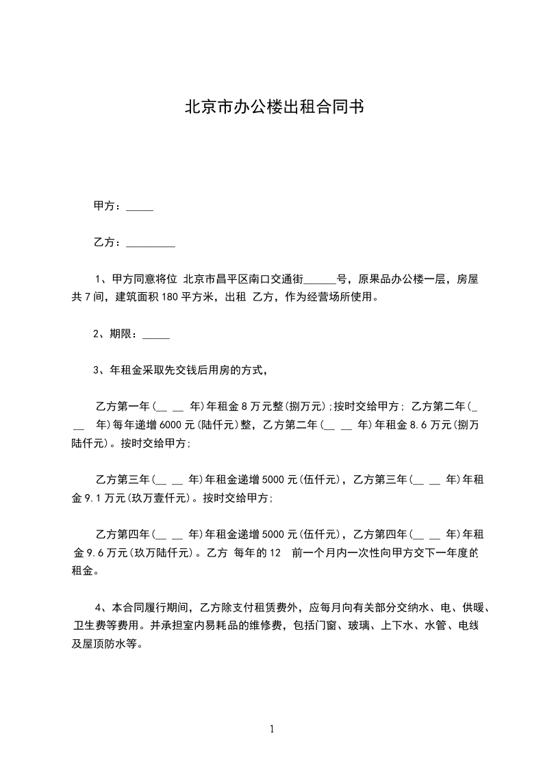 1. 房屋位于北京市________区________号________大厦__________室,面积________m,房屋所有权证号:_______________,土地使用权证号:____________。
