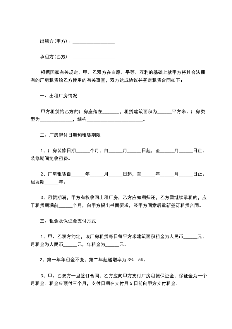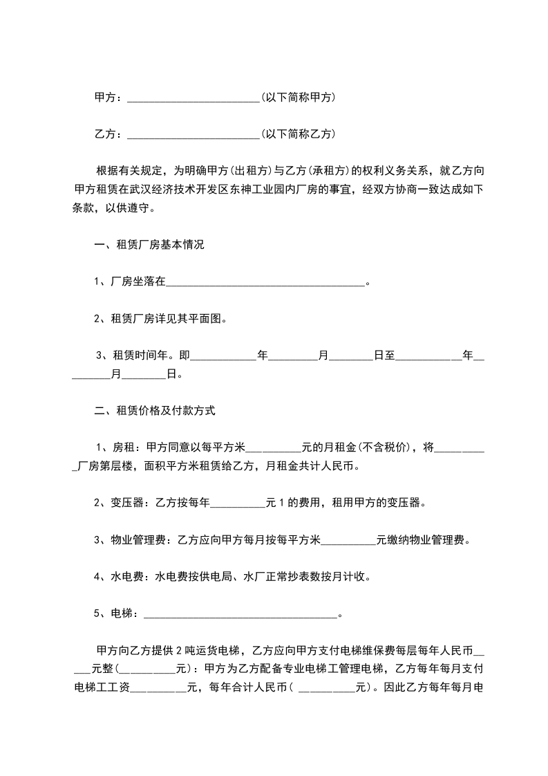 2、厂房租赁自______年______月______日起,至______年______月______日止。租赁期______年。