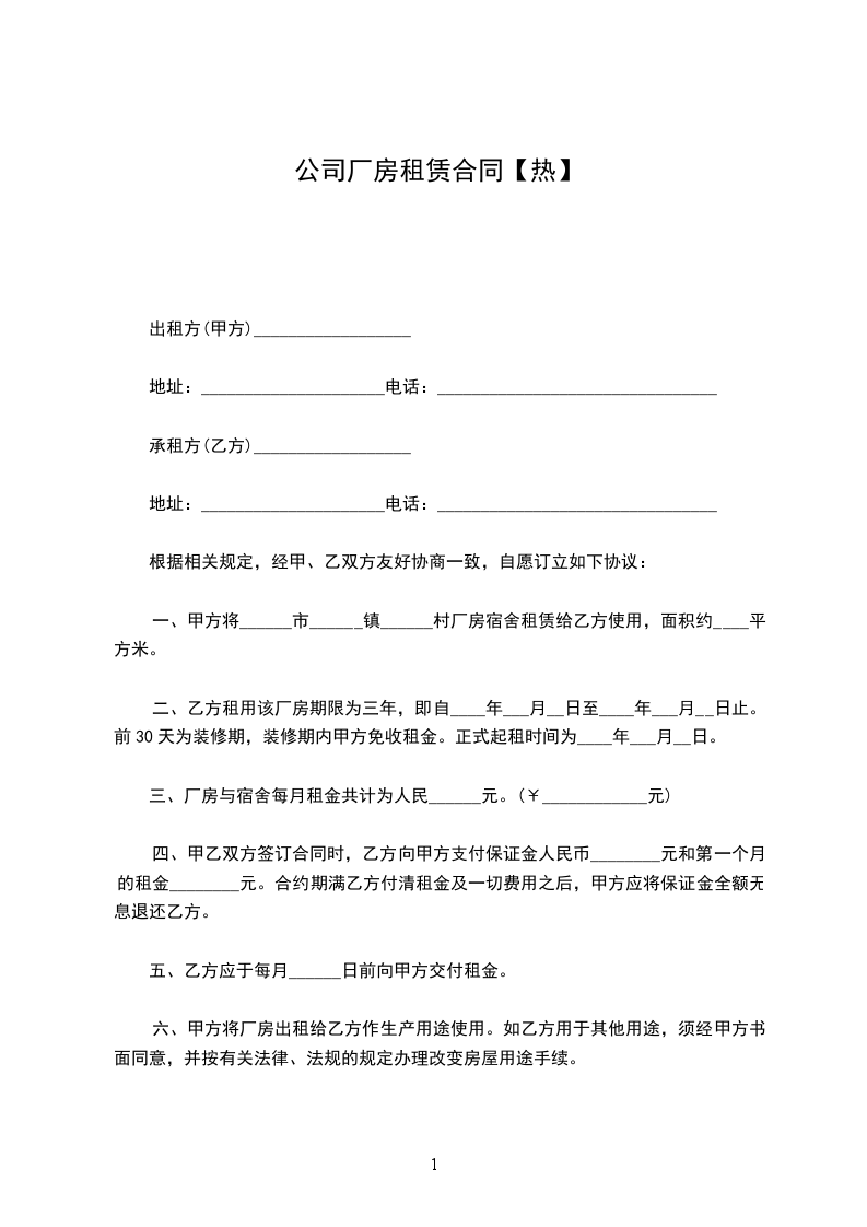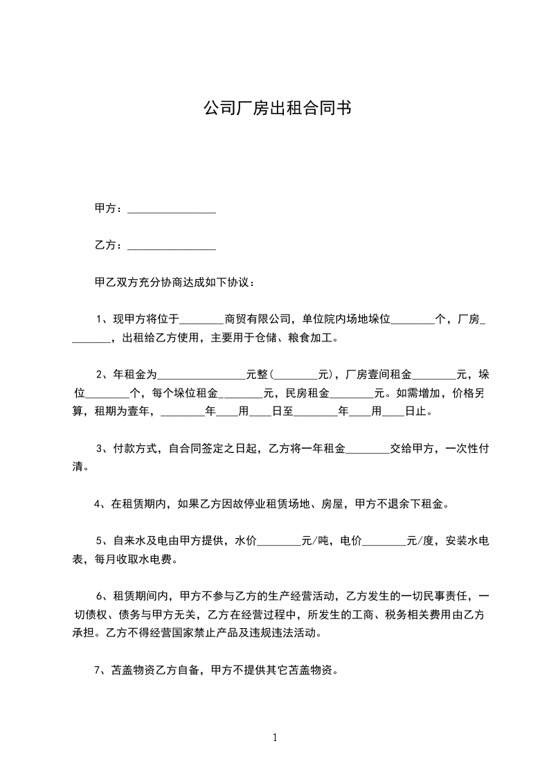 1、甲、乙双方约定,该厂房租赁每日每平方米建筑面积租金为人民币______元。月租金为人民币______元,年租金为______元。