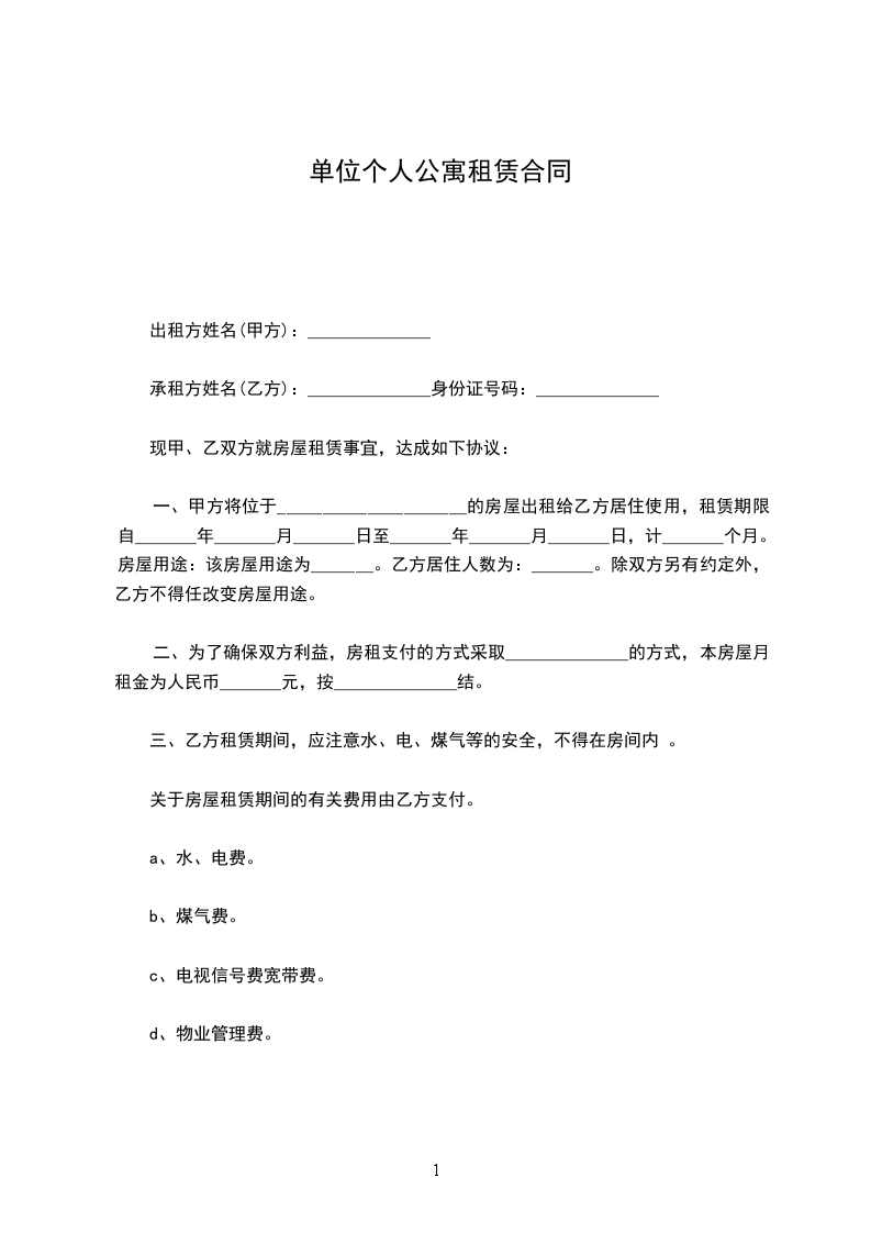 乙方(承租人):_________身份证号码:_______________________。