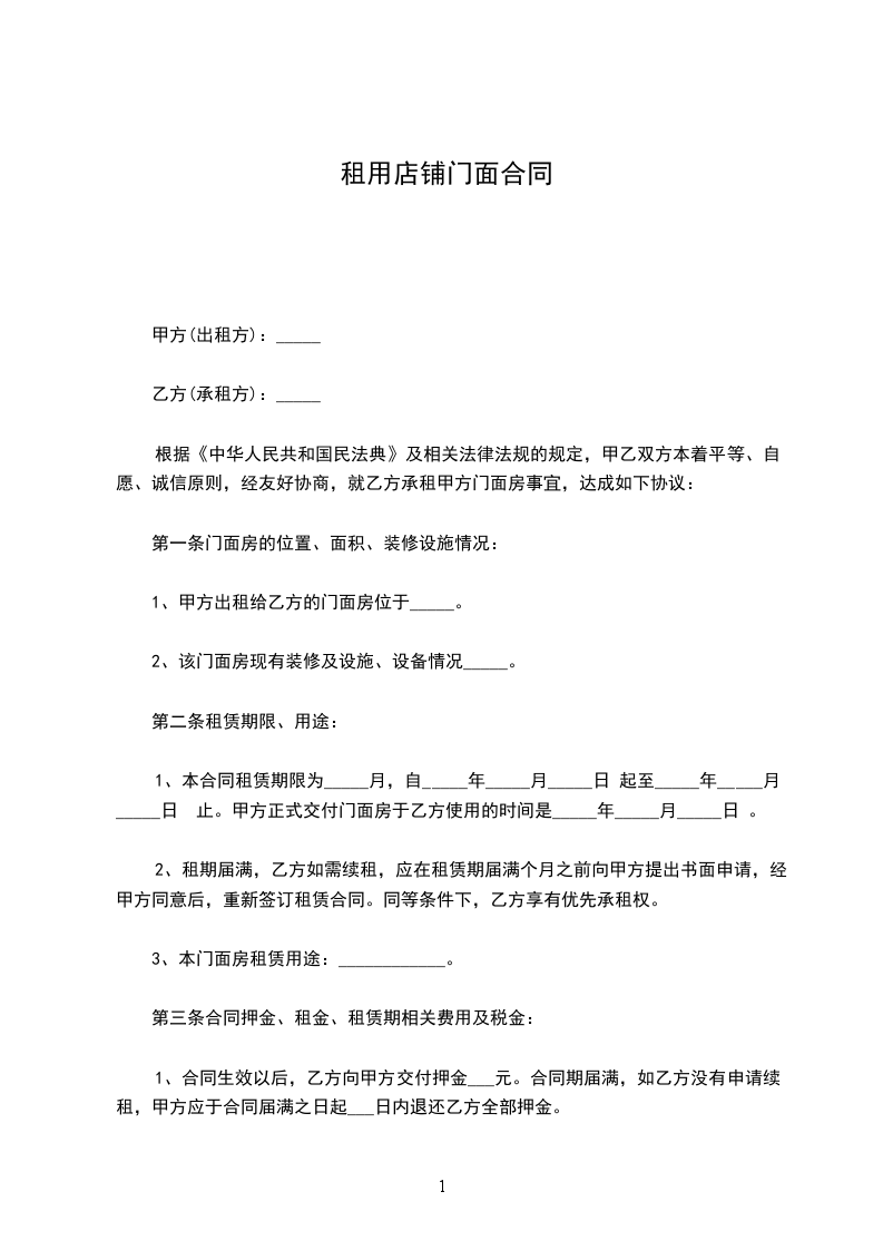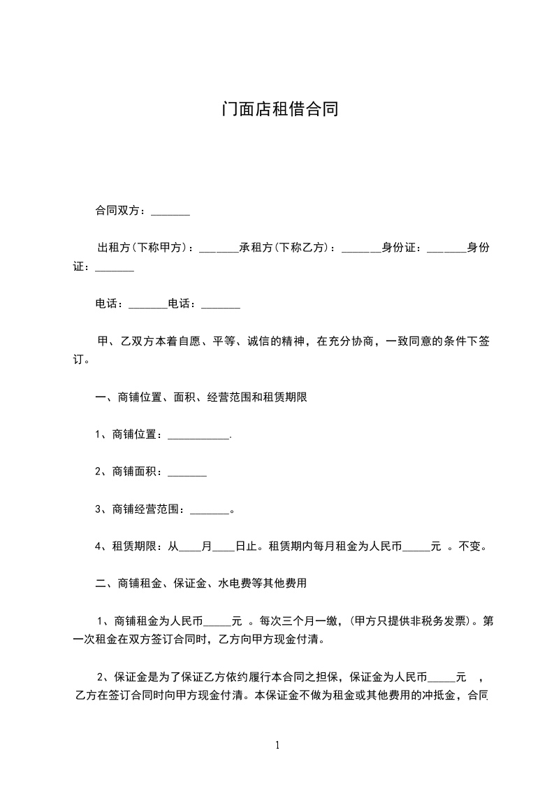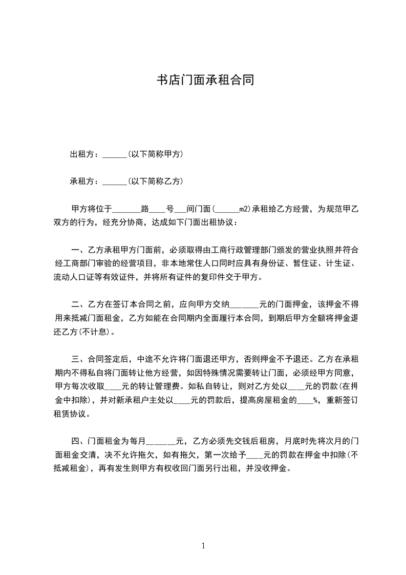 1、甲方在合同执行期间不得将商铺转租第三者,否则甲方将壹倍退还乙方保证金____人民币