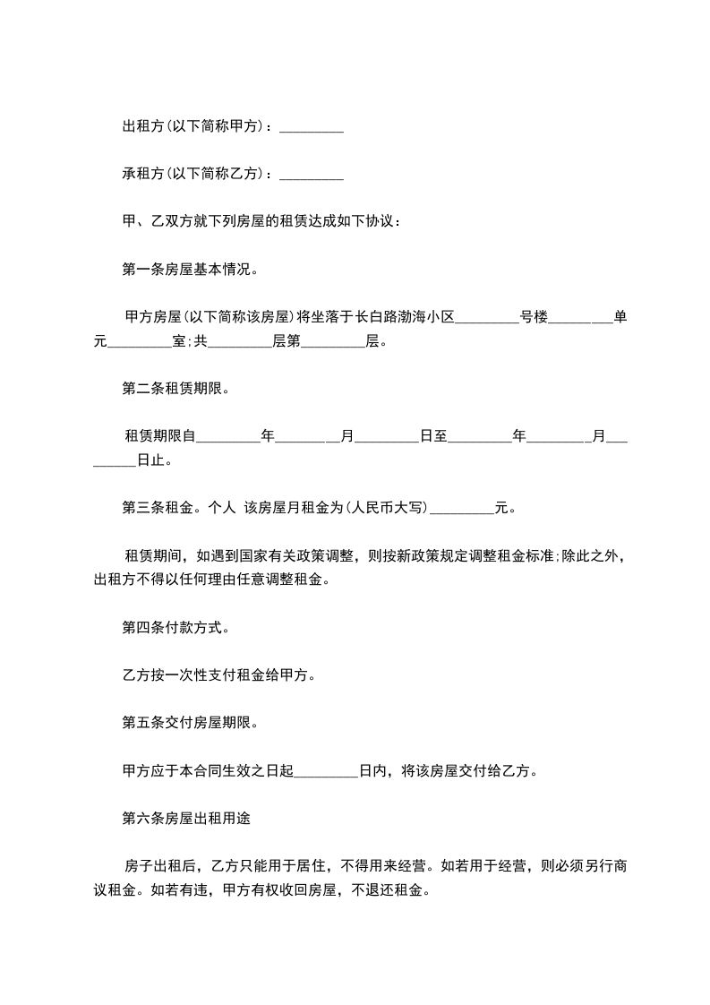 租赁期共 年,甲方从______ 年 ______月______ 日起将住宅房交付乙方使用,至______ 年______ 月______ 日收回。