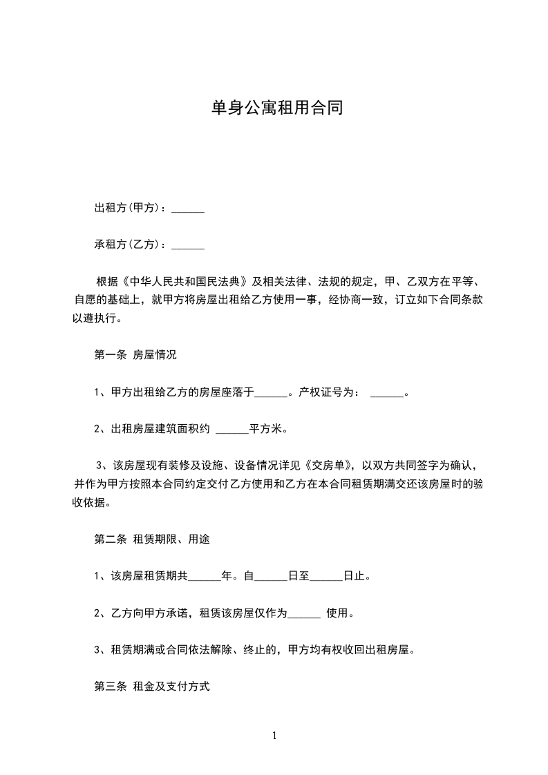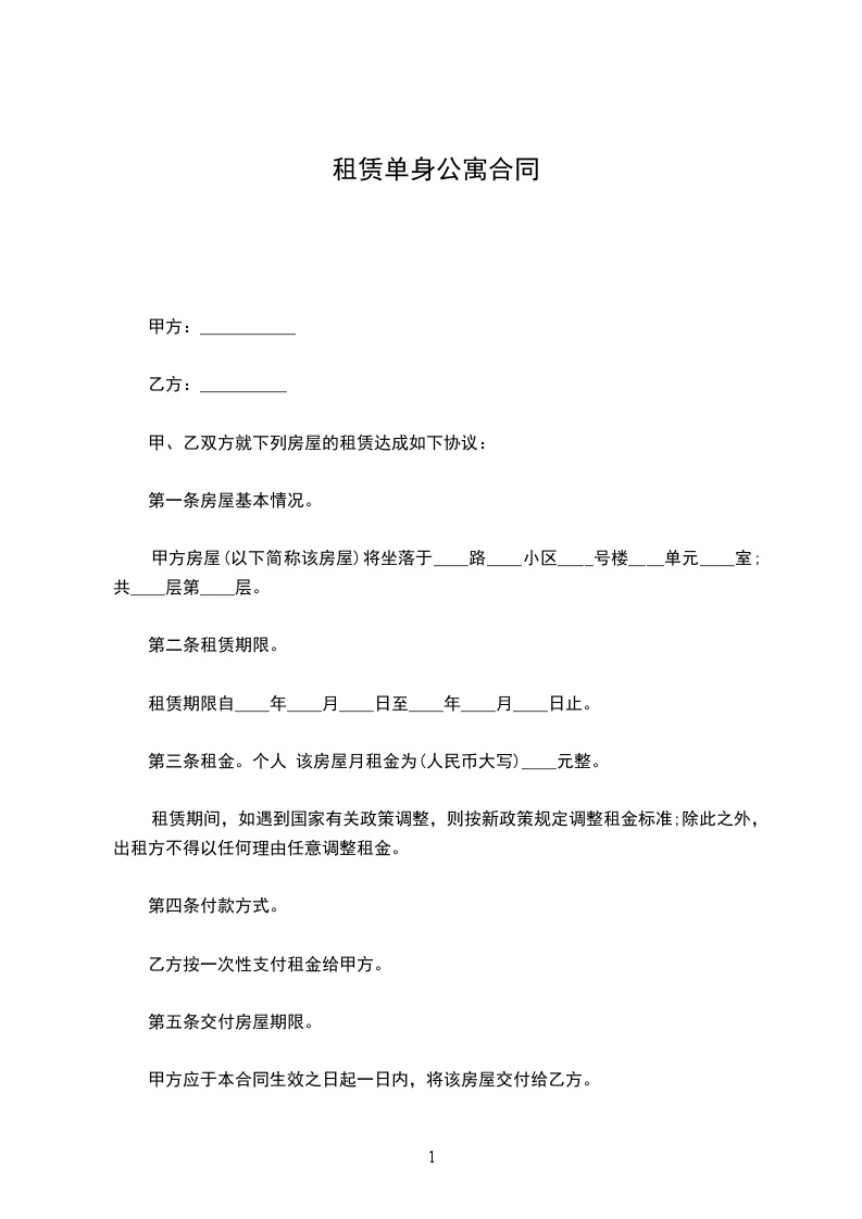 出租方:(以下简称甲方)____________