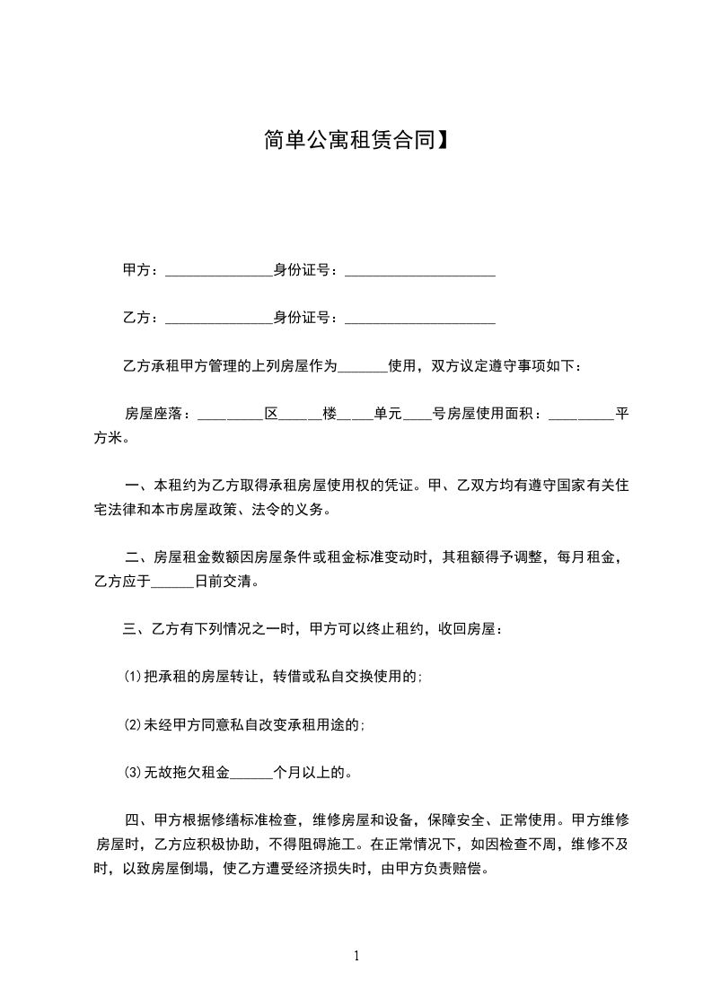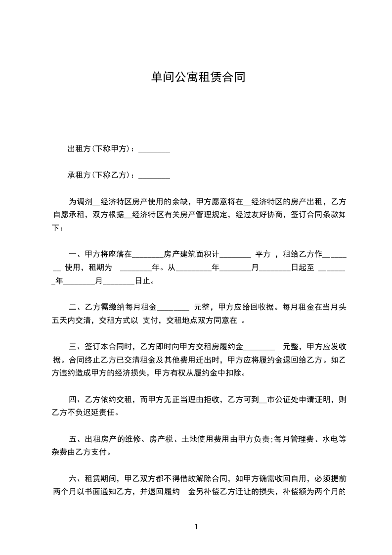 4、租赁期满,甲方有权收回出租房屋,乙方应如期交还。乙方如要求续租,则必须在租赁期满前______个月内通知甲方,经甲方同意后,重新签订租赁合同。