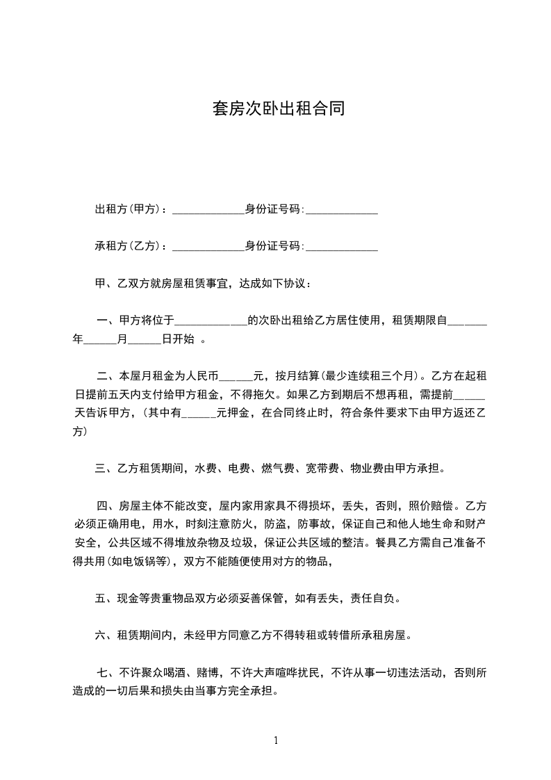 1、租赁期间,未经甲方书面同意,乙方不得擅自转租、转借承租房屋。
