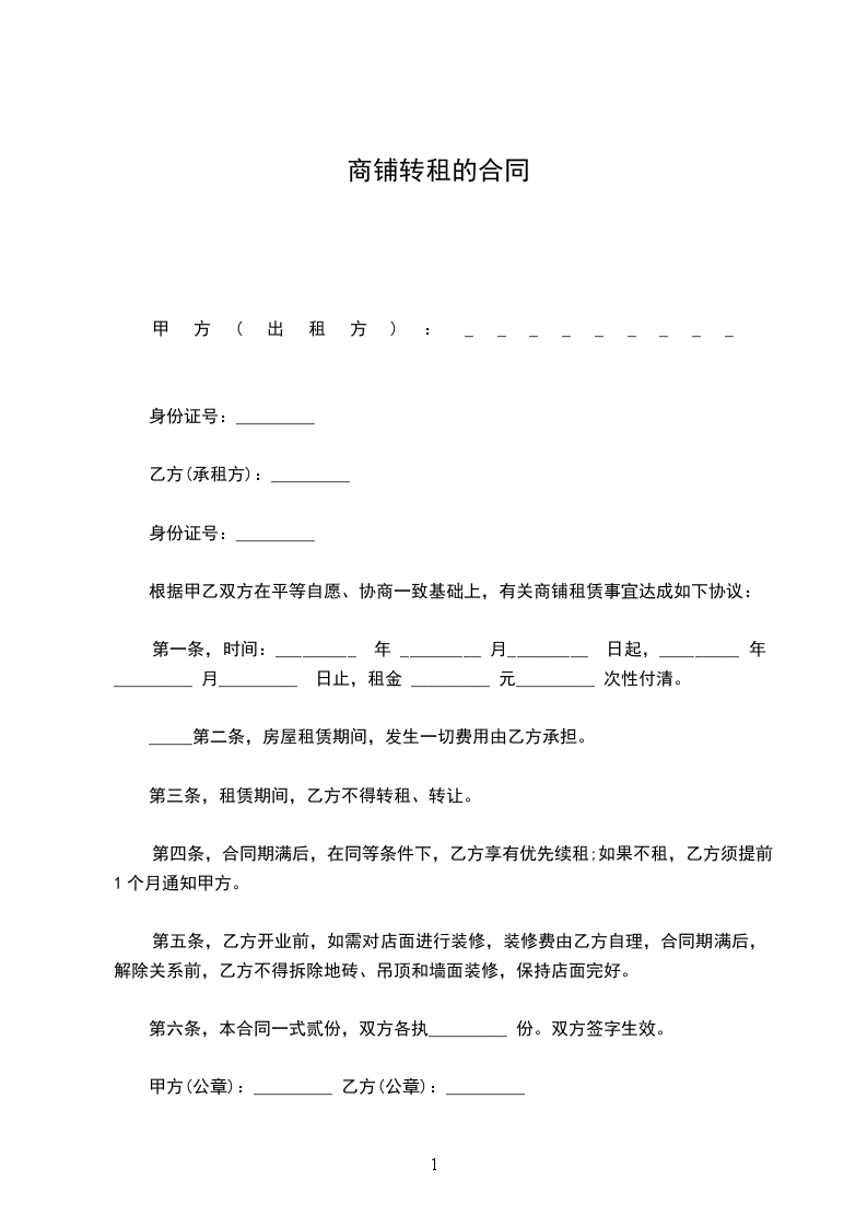 第五条 租赁期间,乙方不得转租该商铺。如乙方确需转租,须经甲方协商同意。如乙方在未征求甲方同意的情况下,私自将房屋转租他人的,则甲方有权单方面宣布中止该合同,并有权将房屋收回另租他人。而乙方所交的保证金(即作为违约金),一律不予退回。租赁期满,在同等条件下,乙方有优先续租权。如甲乙双方任何一方需提前中止本合同,均需提前一个月通知对方,且违约方须向对方支付 两 个月的租金作为违约金。