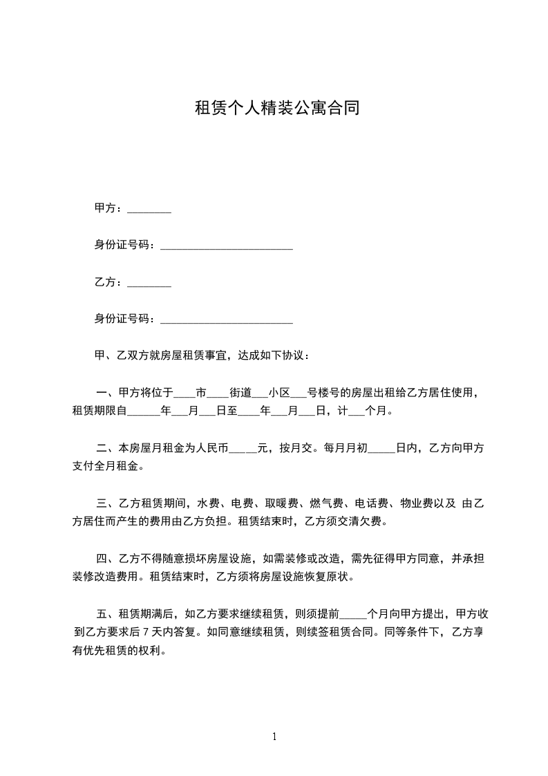 出租方(以下简称甲方):________身份证:________________