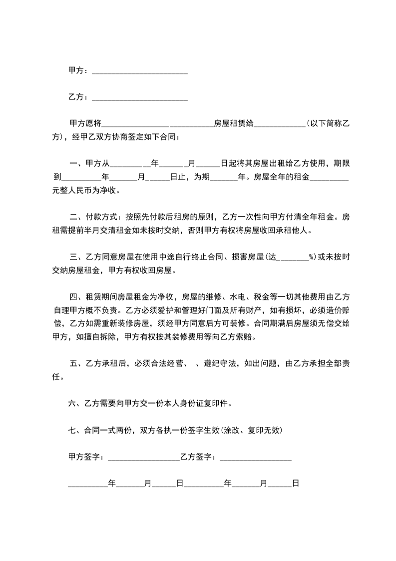 2、租赁期满,甲方有权收回全部出租房屋,乙方应如期交还。乙方如要求续租,则必须在租赁期满前的月向甲方提出书面意向,经甲方同意后,重新签订租赁合同。