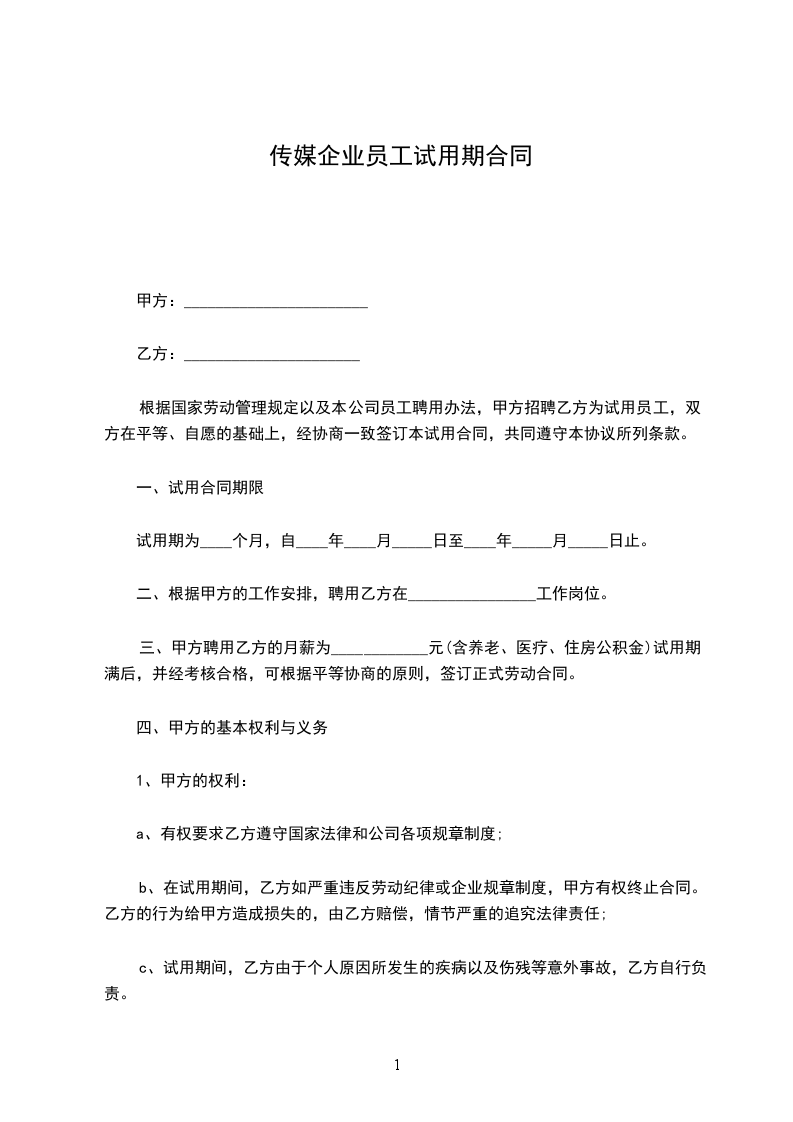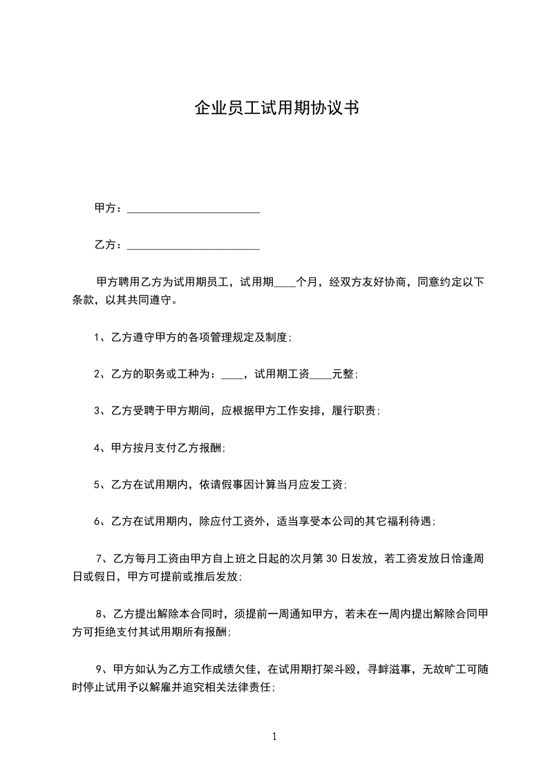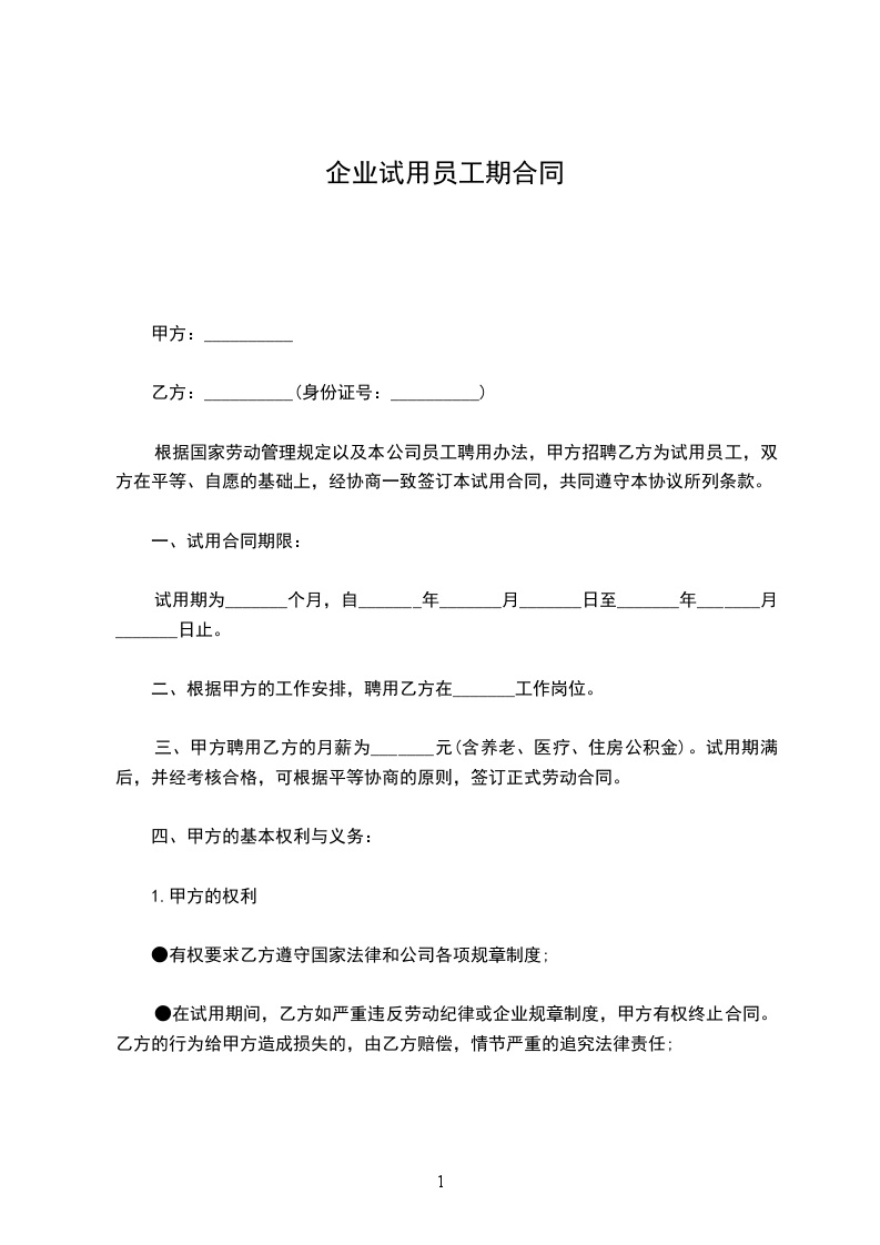 根据国家劳动管理规定以及本公司员工聘用办法,甲方招聘乙方为试用员工,双方在平等、自愿的基础上,经协商一致签订本试用合同,共同遵守本协议所列条款。