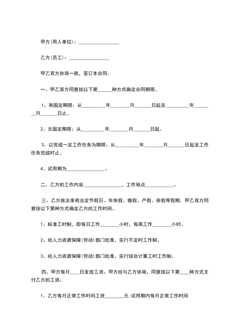 3、以完成一定工作任务为期限:从__________年________月_______日起至工作任务完成时止。