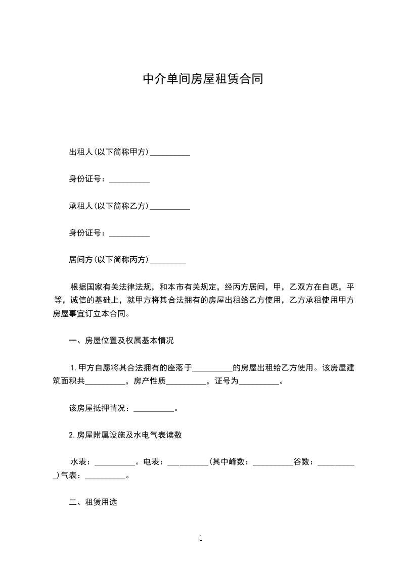 根据国家有关法律法规,和本市有关规定,经丙方居间,甲,乙双方在自愿,平等,诚信的基础上,就甲方将其合法拥有的房屋出租给乙方使用,乙方承租使用甲方房屋事宜订立本合同。