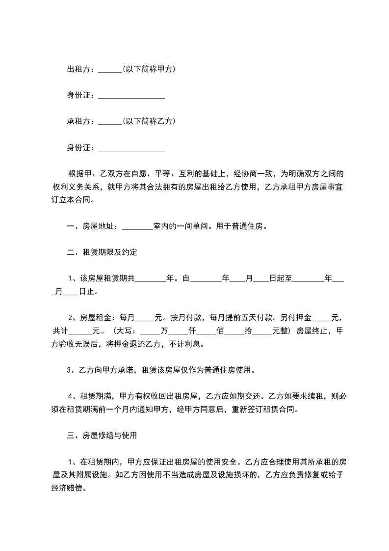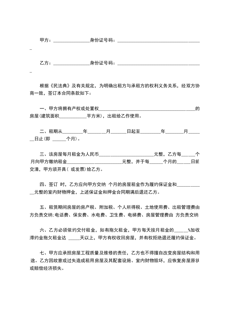 1.租赁地址:_________区_________号_______室;房型规格__________;居住面积平方_________米。