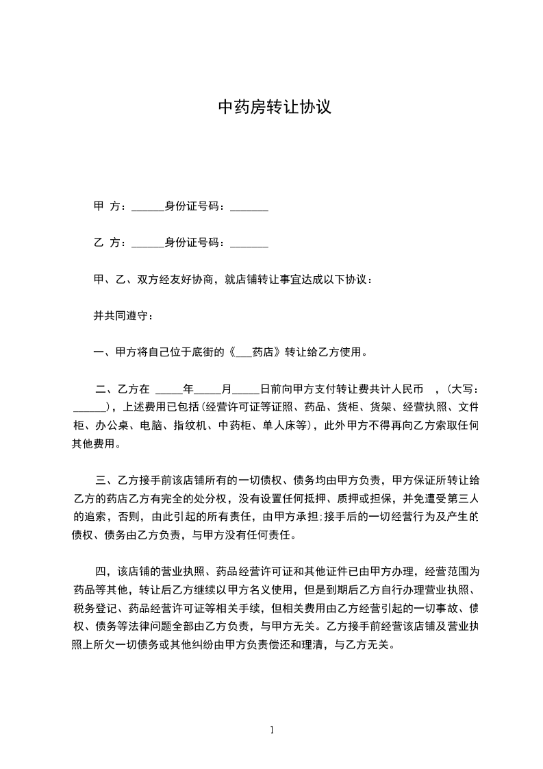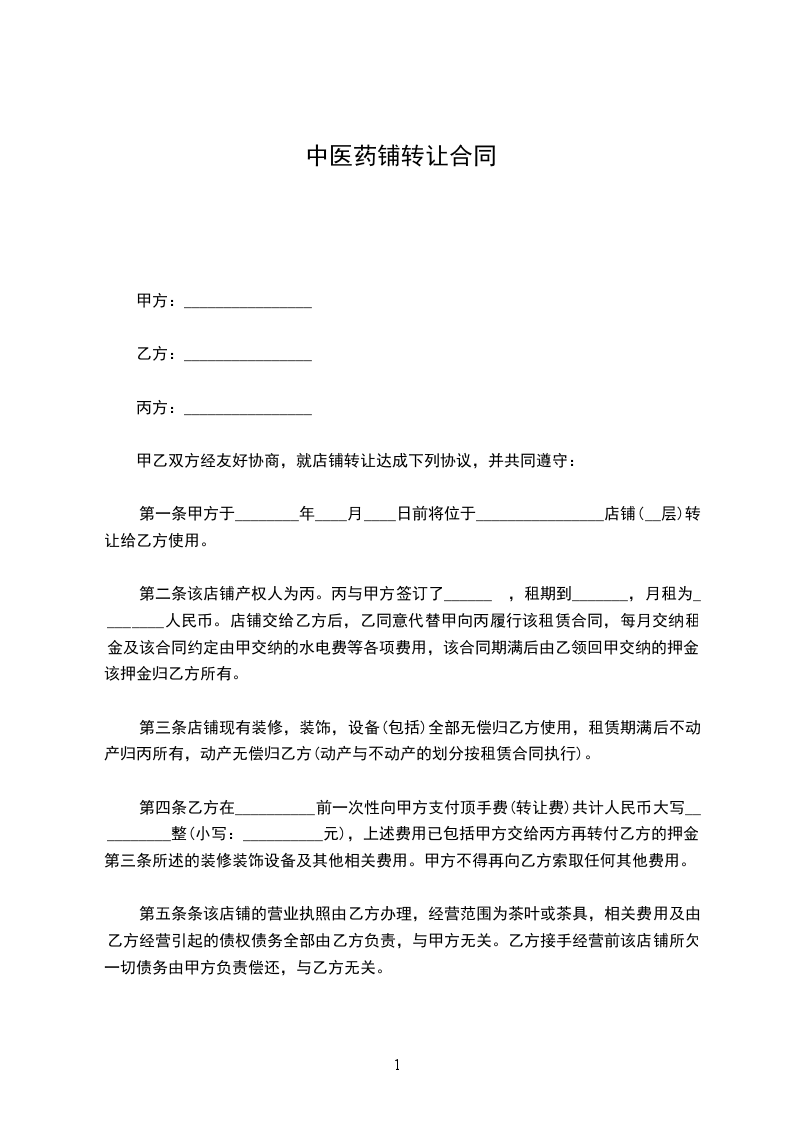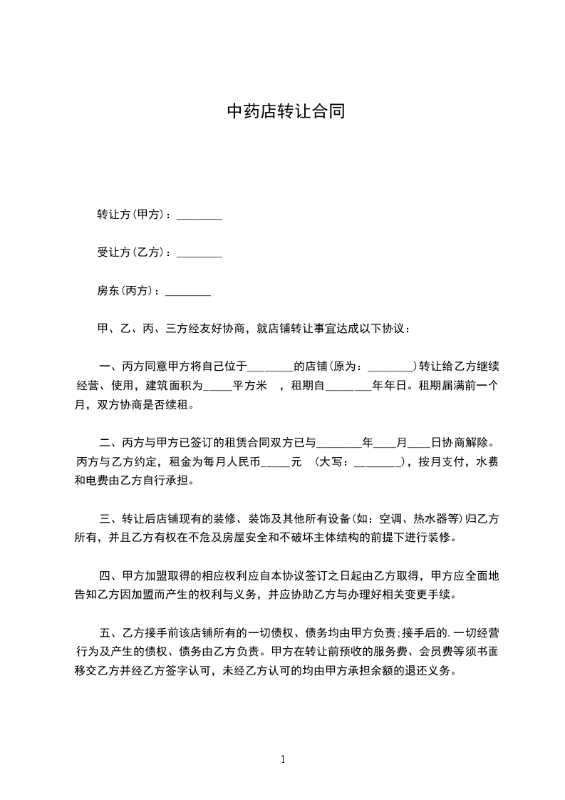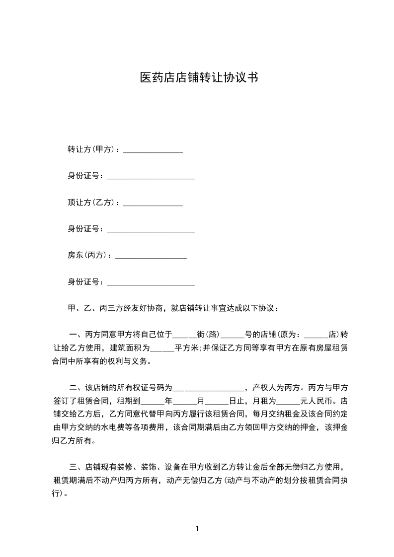 甲乙双方经友好协商,就店铺转让达成下列协议,并共同遵守: