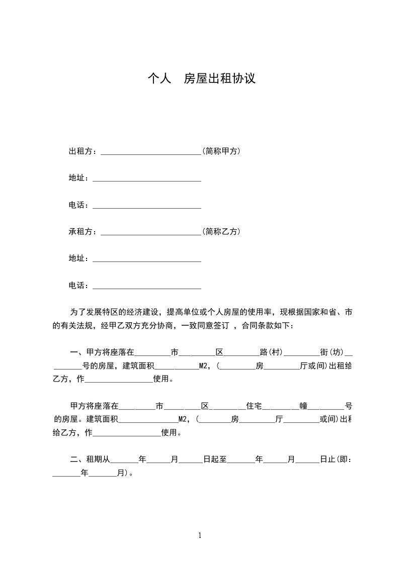 为了发展特区的经济建设,提高单位或个人房屋的使用率,现根据国家和省、市的有关法规,经甲乙双方充分协商,一致同意签订 ,合同条款如下: