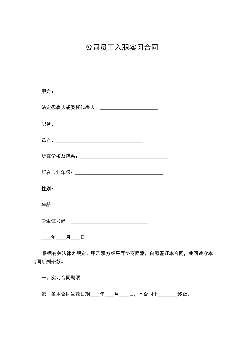 一、实习合同期限