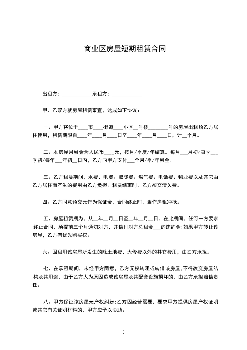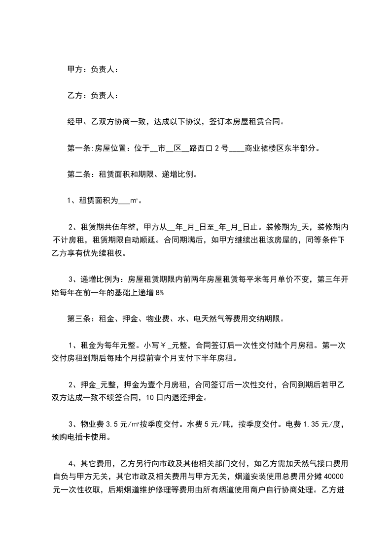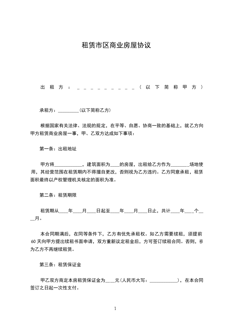 根据国家有关法律、法规的规定,在平等、自愿、协商一致的基础上,就乙方向甲方租赁商业房屋一事,甲、乙双方达成如下事项: