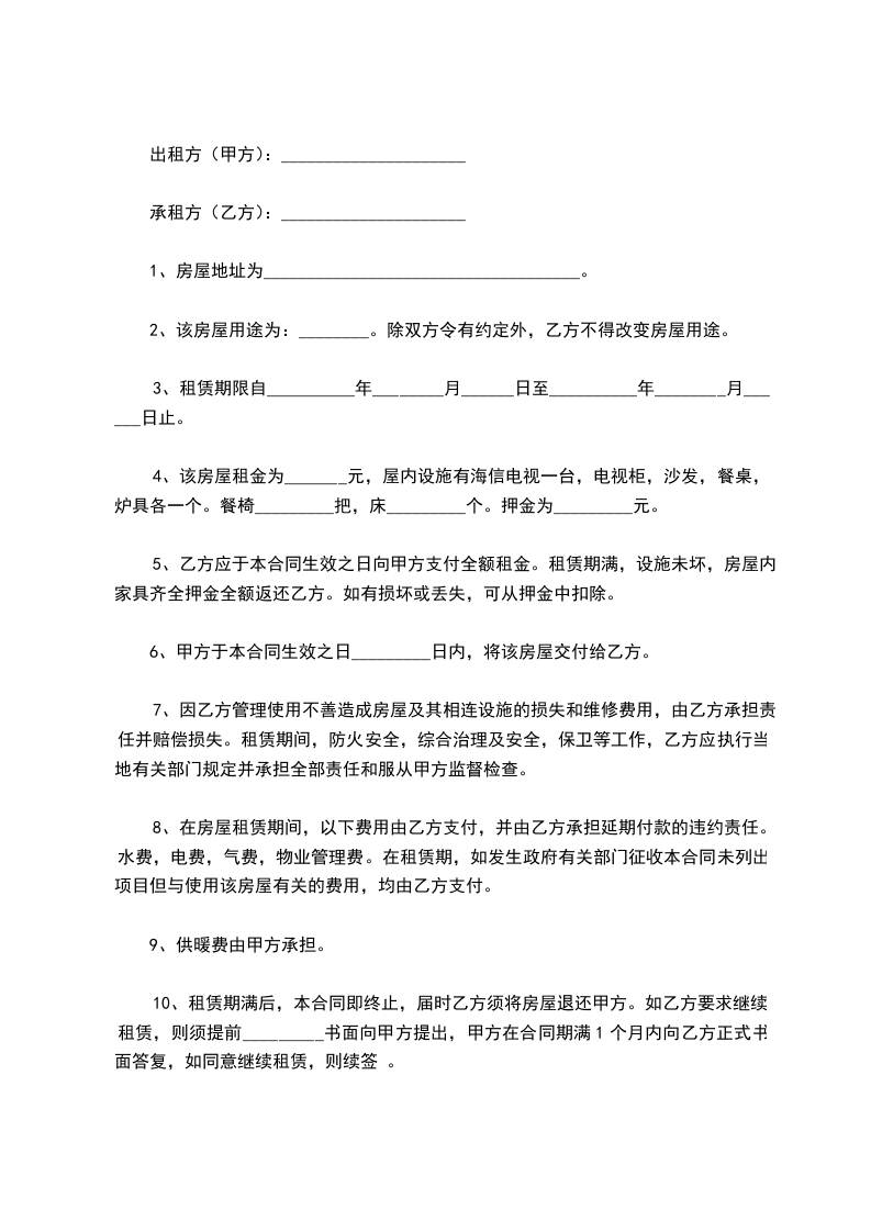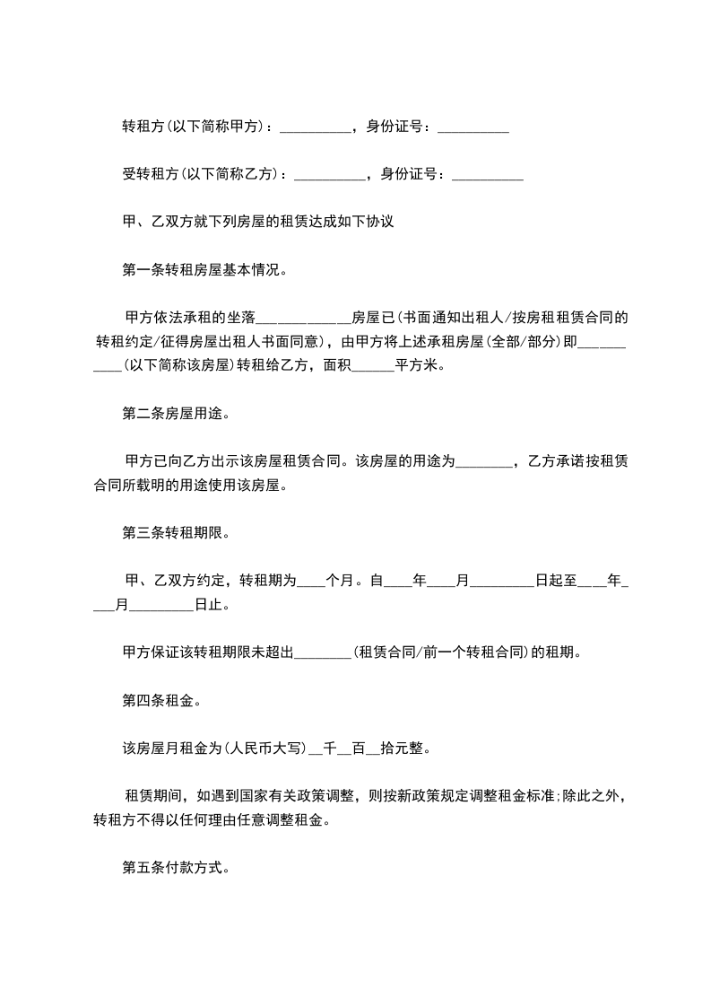 1、丙方与甲方原租赁合同,约定的租赁期间为__年,即自__年__月__日起__年__月__日止,月租金为__元人民币,现甲方剩余租期为__月。
