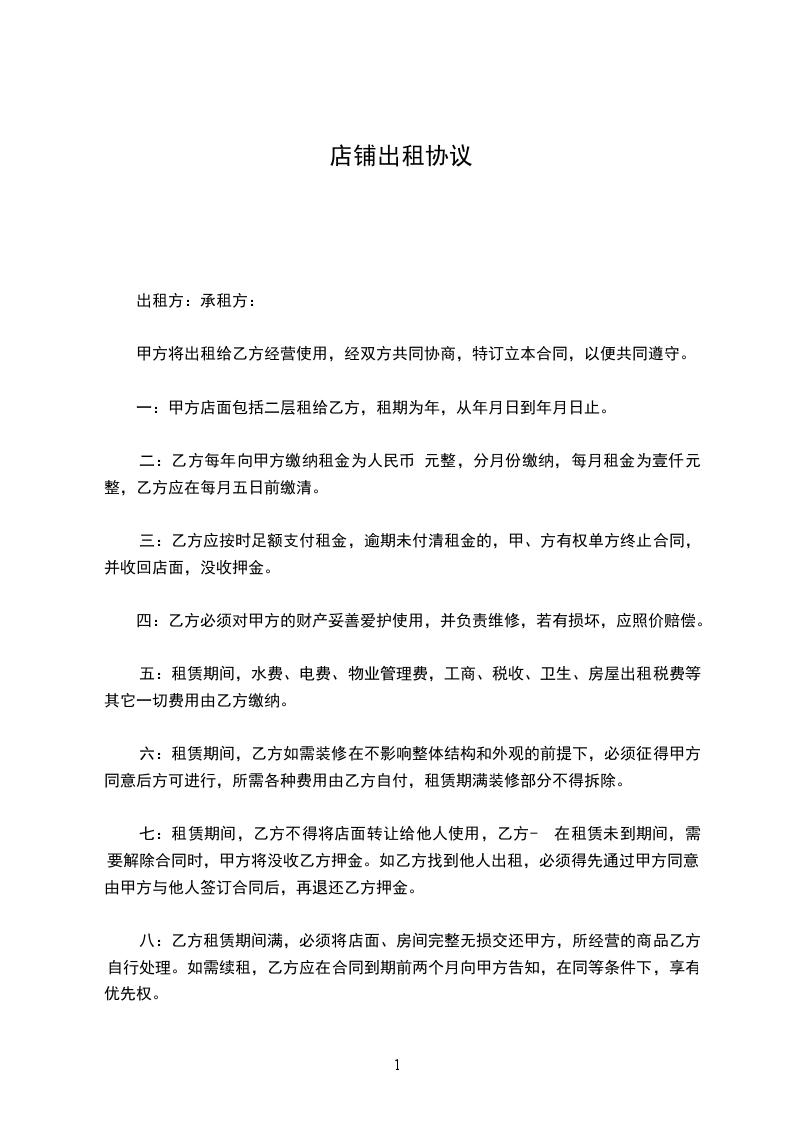 十六、本店面出租协议书样本一式___________份,甲乙双方各执一份。
