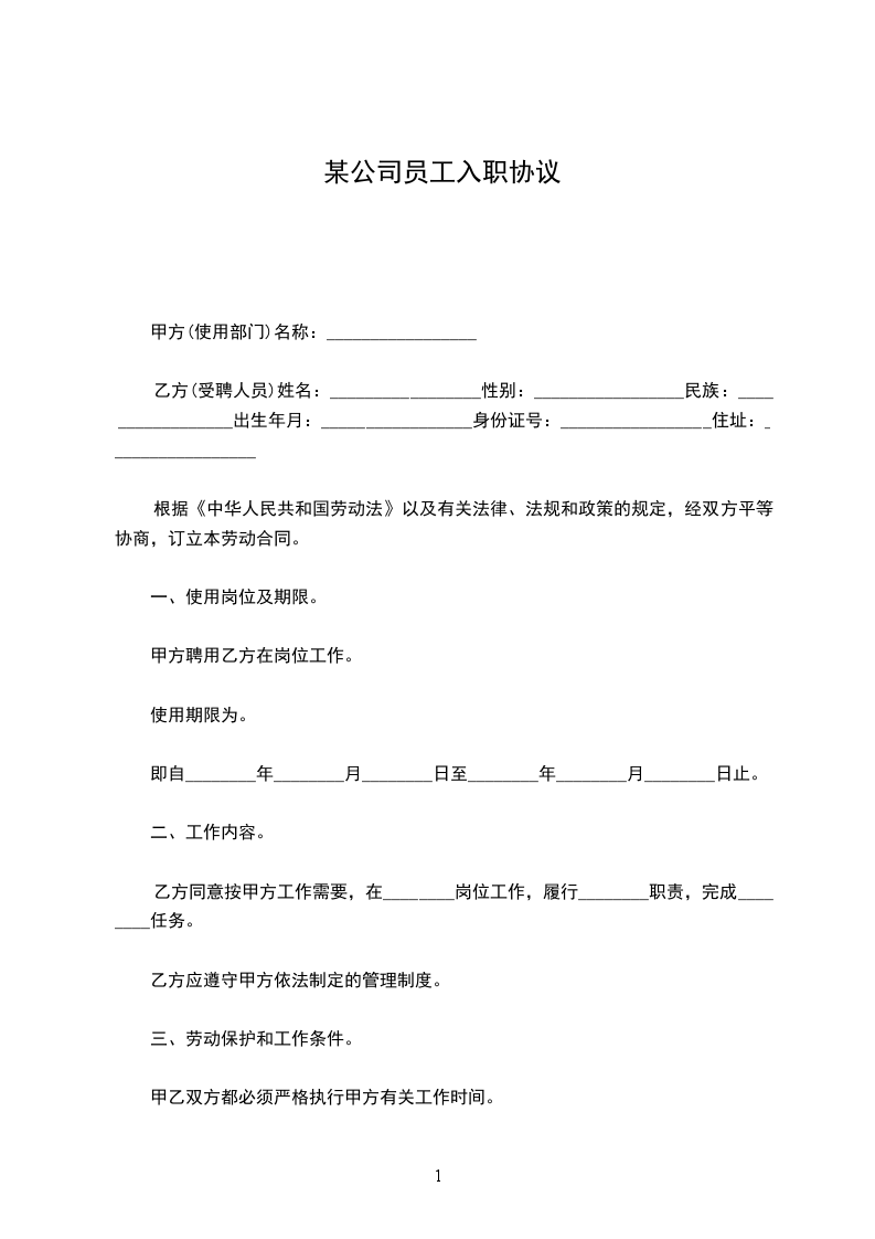 第二条甲方聘用乙方在____________(科室、部门),担任____________(岗位、职位)。