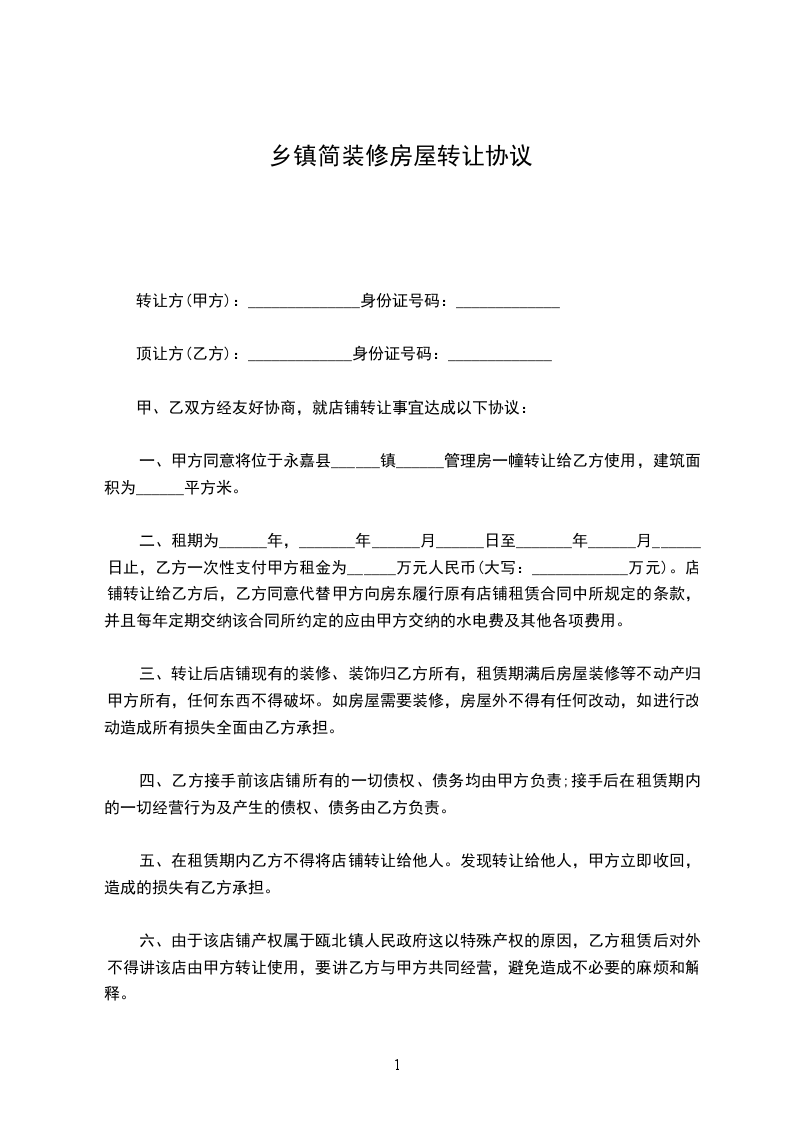 顶让方(乙方):_____________身份证号码:_____________