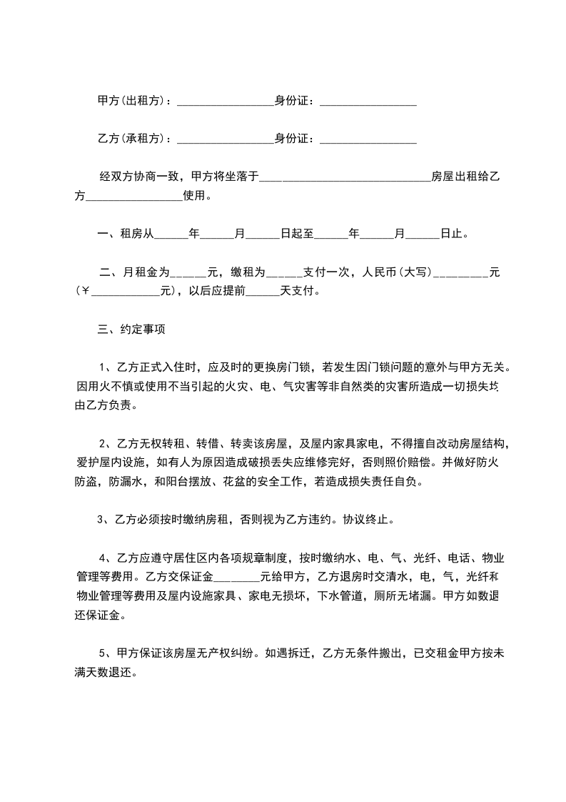 本房屋月租金为人民币______元,按月/季度/年结算。每月月初/每季季初/每年年初______日内,乙方向甲方支付全月/季/年租金。